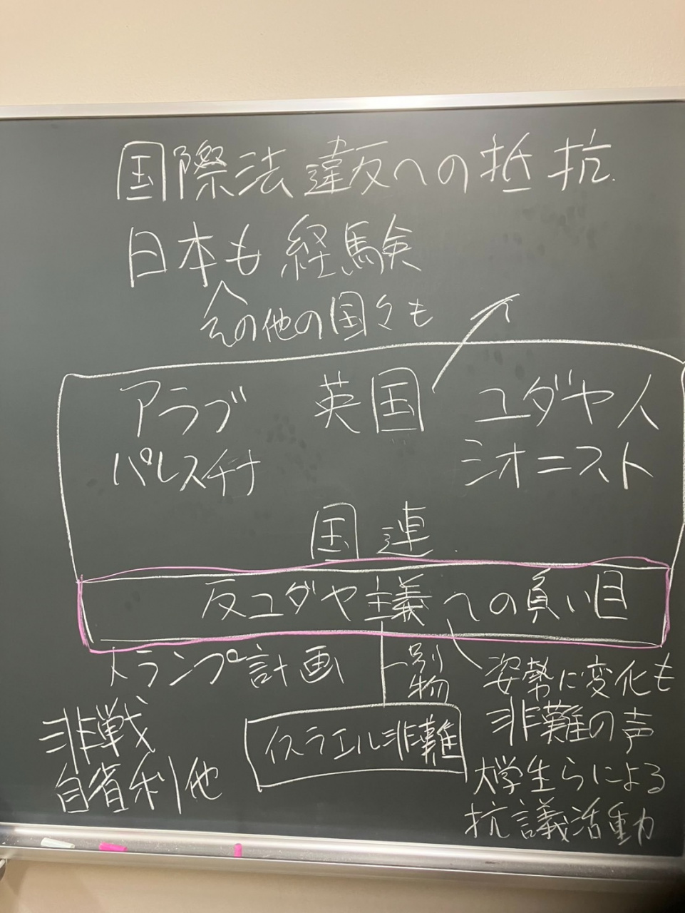 1回目の授業では、2025年1月に龍谷大学で実施された「歴史の忘却に抗して-ガザのジェノサイドと私たち」という講演会の動画の視聴などをとおして、ガザ人道危機とはどのようなものなのかについて学びました。