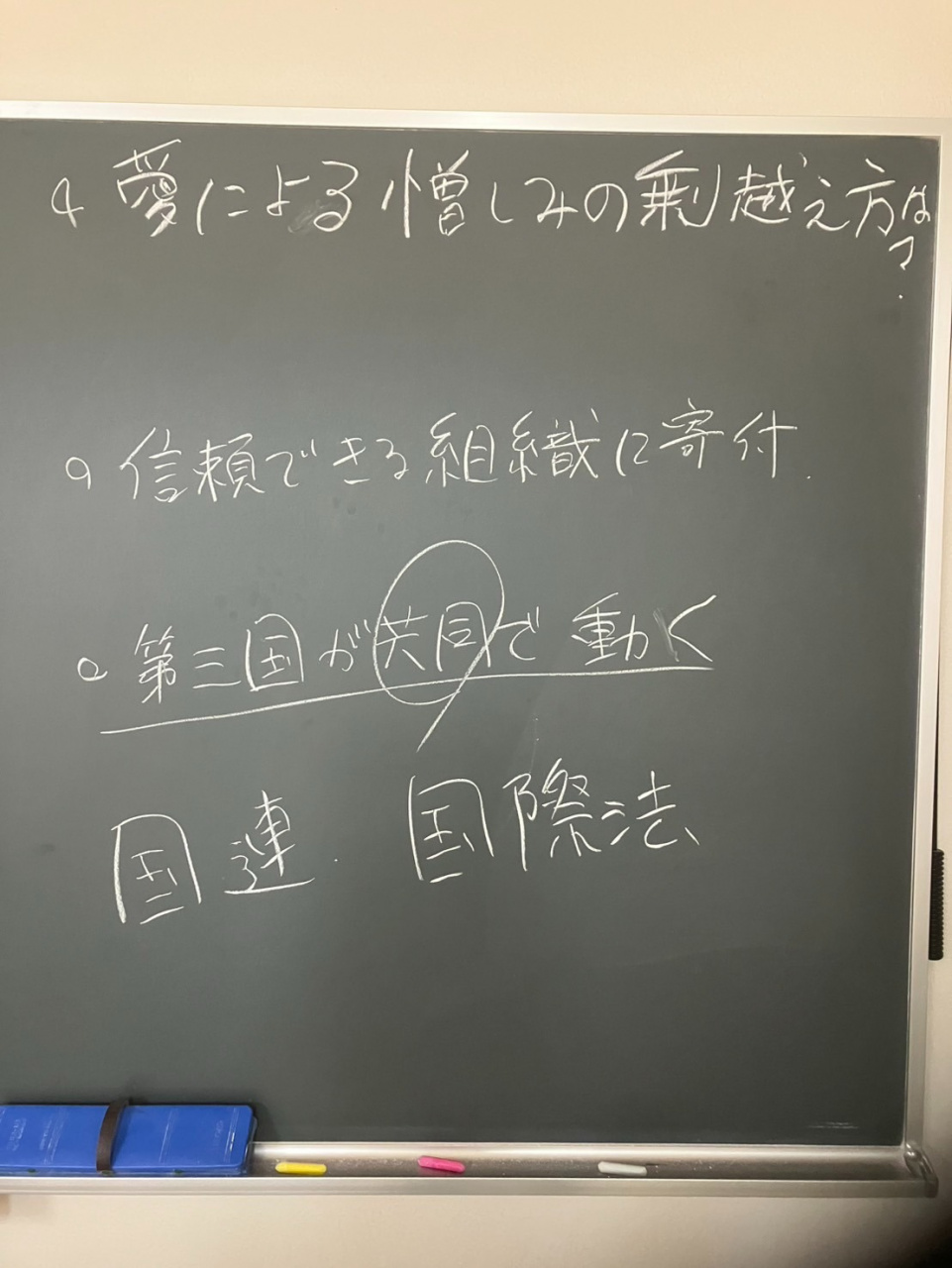 ガザ人道危機についての授業の他に、これまで「命の理解」をテーマにした授業として、東日本大震災についての授業、ハンセン病・障がい者・在日外国人に関する差別・抑圧・人権侵害の過去と現在についての授業を実施してきました。今後、ルワンダ虐殺、平和構築などに関する授業を実施する予定です。