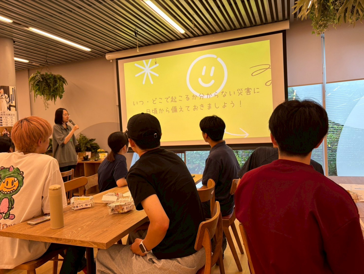 ①非常食の試食 ②減災クイズ ③能登の現状についての報告(実際に能登でボランティア活動をしている学生) ④これから自分達にもできる防災 をテーマにディスカッション等を行いました。