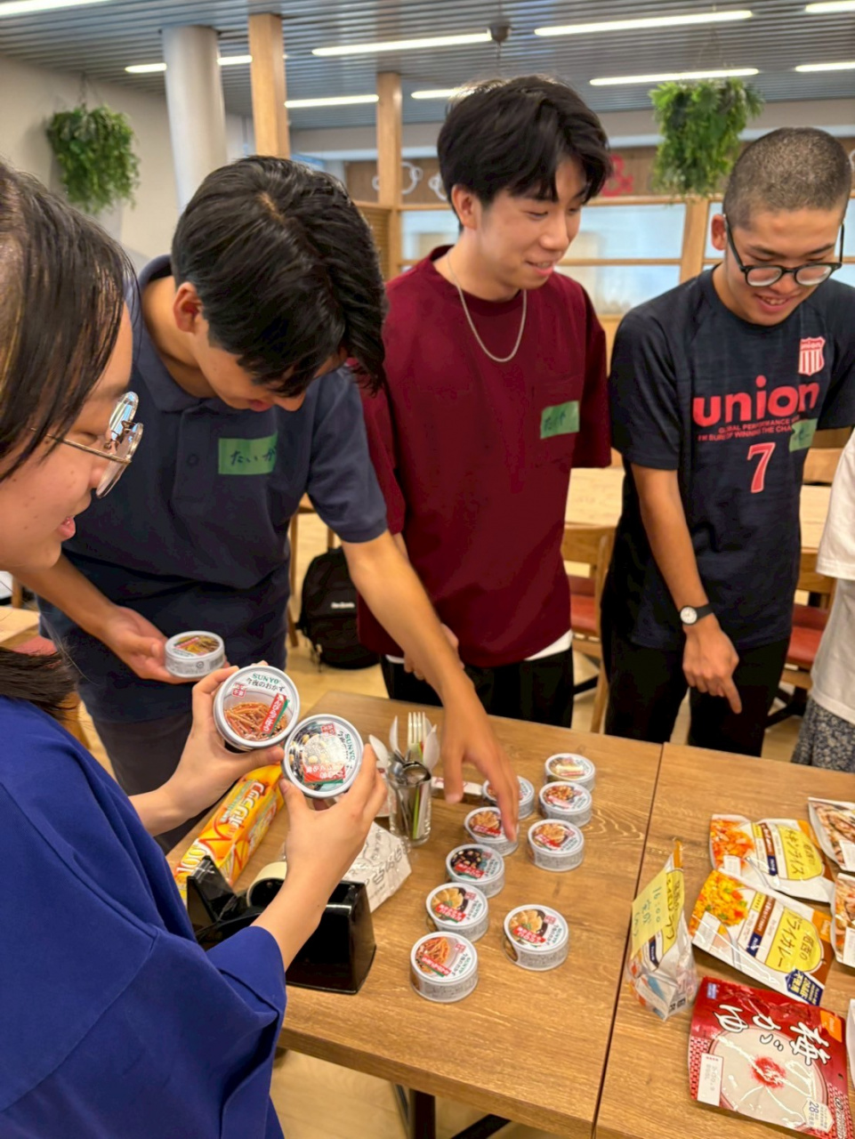 「防災に対しての意識を高める」ことを目指し、学生スタッフの「防災チーム」が、防災について気軽に考えたり取り組める機会をつくりたいと「非常食ボラカフェ」を企画しました。