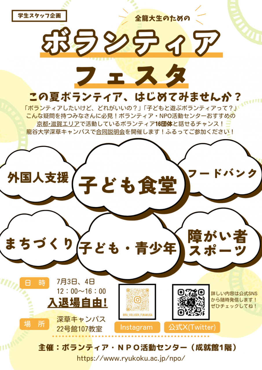 ボランティアに興味があっても、なかなか一歩を踏み出せない学生に向けて、ボランティア募集団体の方と直接会ってお話を聴き、ボランティアへの意欲を高めようと学生スタッフがボランティアフェスタを開催しました。