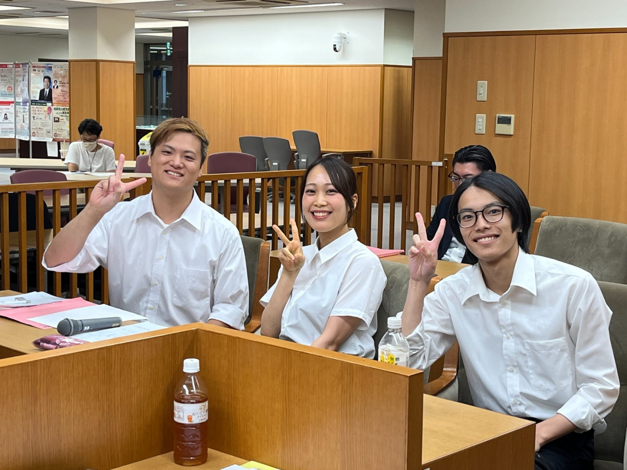 この模擬裁判で一番しんどいのが証人です。ストーリーを考えて全て記憶しなければなりません。尋問に瞬時に対応する頭の回転の良さも必要となります。証人役がいなければ、この模擬裁判は成り立ちません。「自分たちの模擬裁判は証人役を引き受けてくれた先輩のおかげで成功させることができた!」 その恩を先輩ではなく後輩に返すという「縦の贈与の連鎖」が15年も続いています。今年も俳優顔負けの素晴らしい証人でした。