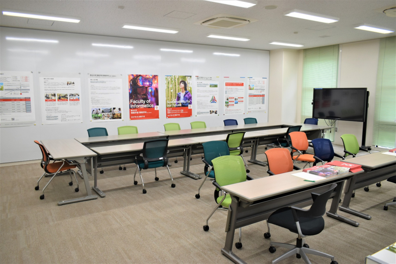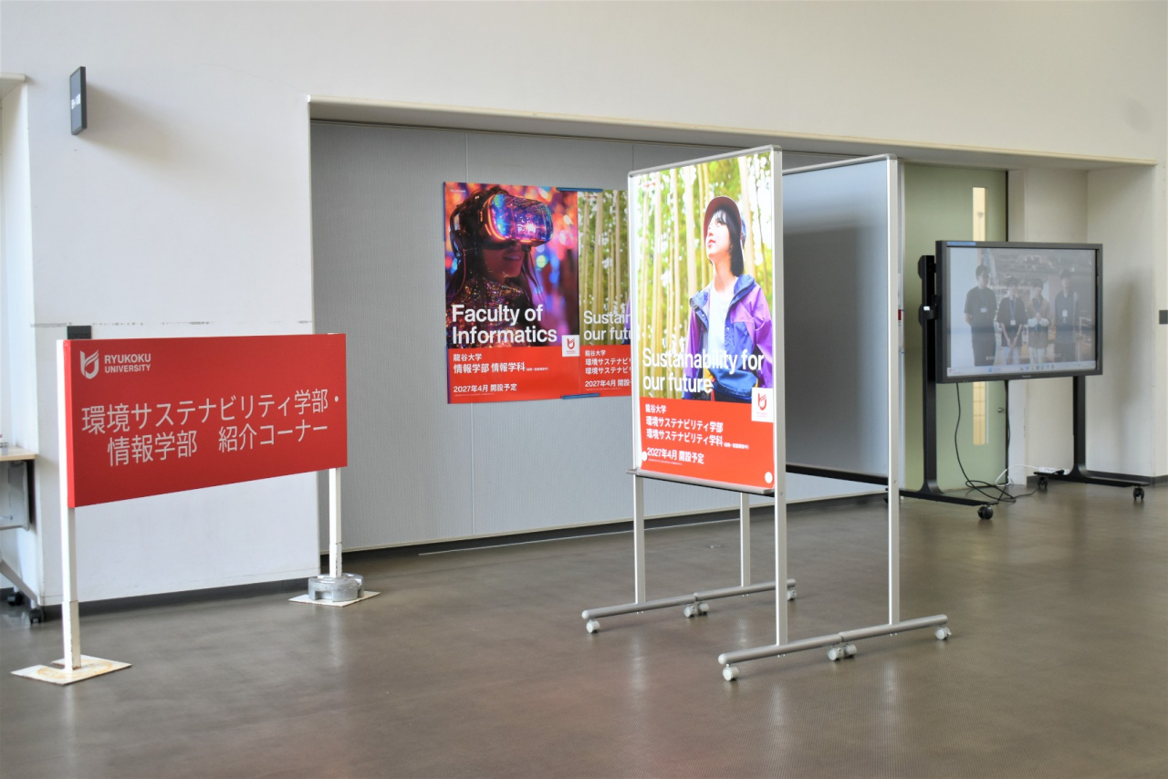 新学部紹介ブースでは、各学部のポスター展示や特徴的な学びを知ることができる動画を流しています。
