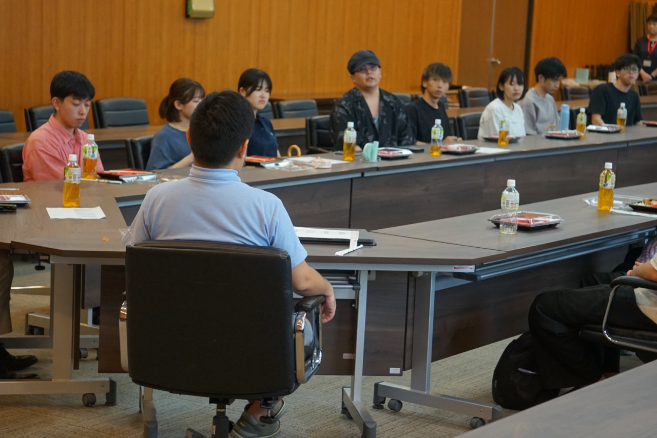 表彰式に加え、昼食をとりながら表彰学生と学部長・学生生活主任が懇談会を行いました。学生が感じている本学の改善点や良いポイント等を意見交換し、大変有意義な表彰式になりました。