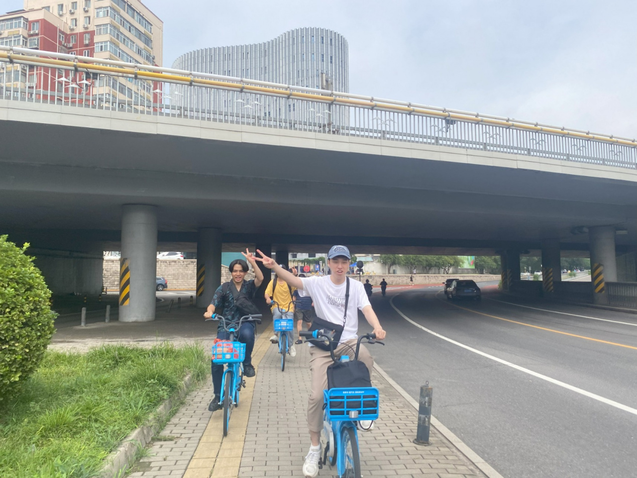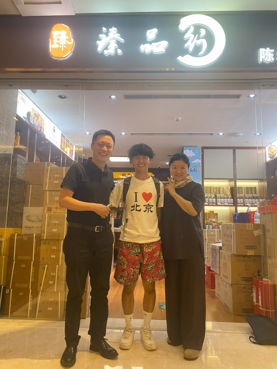 そして我々は天安門周辺へと向かいました。アリペイを使い自転車で約20分漕ぐ予定だったが、僕だけ何故か自転車をレンタル出来ずに走る羽目に。。元陸上部ではあったが、自転車のペースに合わせて約30分ほど走り身体は限界に。。(今も筋肉痛が残っています。。)そんな事もをあり、天安門付近に到着したが時間に余裕がなく15分ほど近辺を歩く事しかできなかったです。9月3日に天安門では戦争にまつわる大規模なパレードがあり、近づく事は出来なかったが周辺を歩くだけでも街の活気を感じることができました。天安門付近では警備や軍の人がたくさん配置されており、規制が厳しかったです。帰りはタクシーを使い無事ホテルに到着しました。ホテルの一階にあるお土産屋さんを営んでいる家族がなぜか僕気に入ってもらい、今日で帰るんだと伝えたところお茶を何杯もご馳走になりました。飲んでも飲んでも何度も注いでくれるご家族に少し困惑しましたが、そういえば中国は少し残す事でお腹いっぱい、ありがとうの意味がある事を思い出しました。とても素敵な家族と出会う事ができ最後の最後により一層中国のことが大好きになりました。