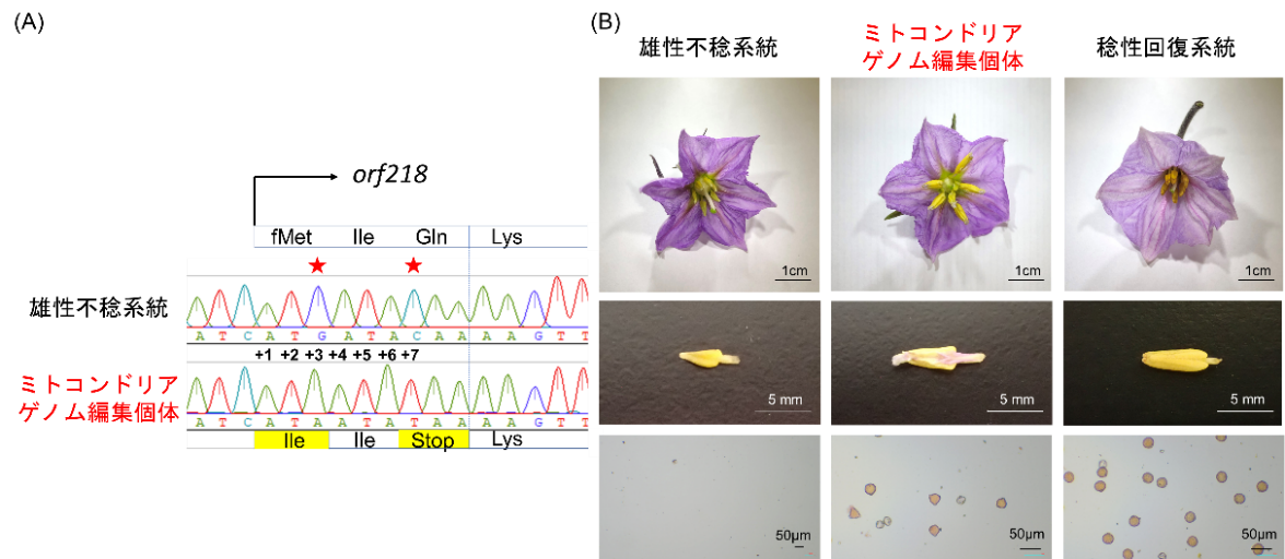 ミトコンドリアゲノム編集法によりナスの細胞質雄性不稔の原因遺伝子の機能証明に成功