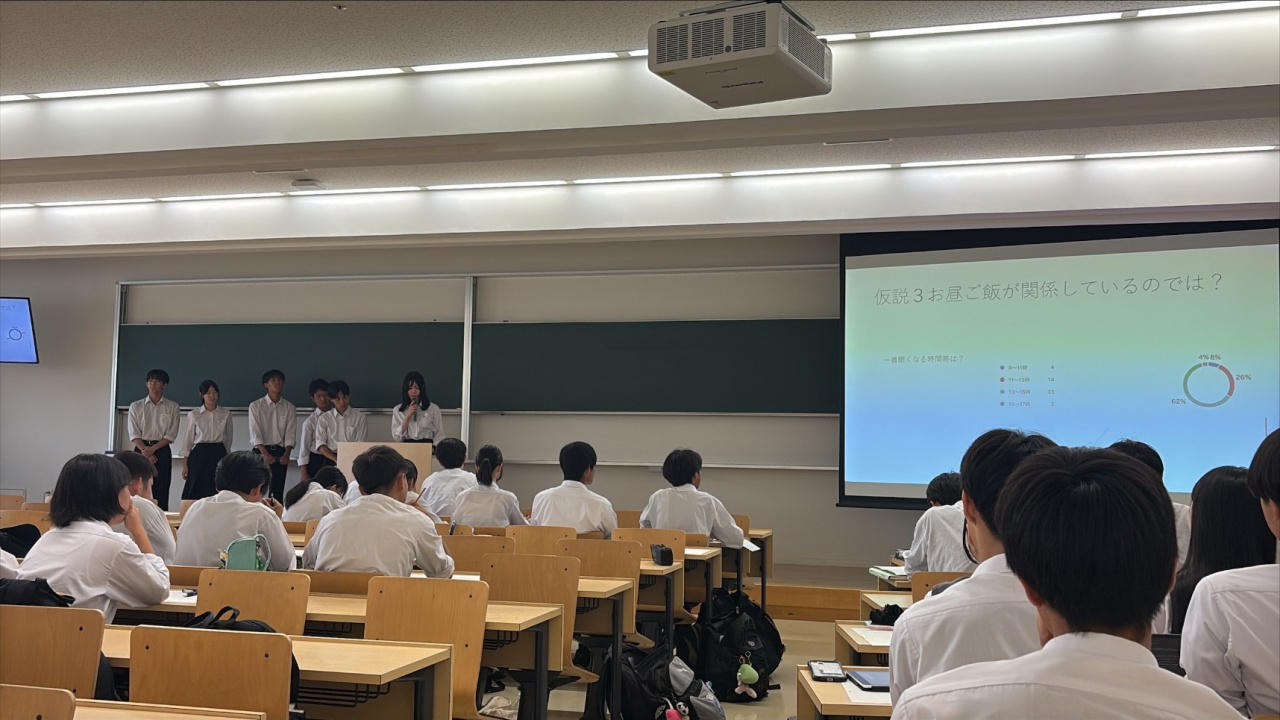 滋賀県立草津東高等学校の探究活動経過報告会を瀬田学舎で開催しました(高大連携推進室)