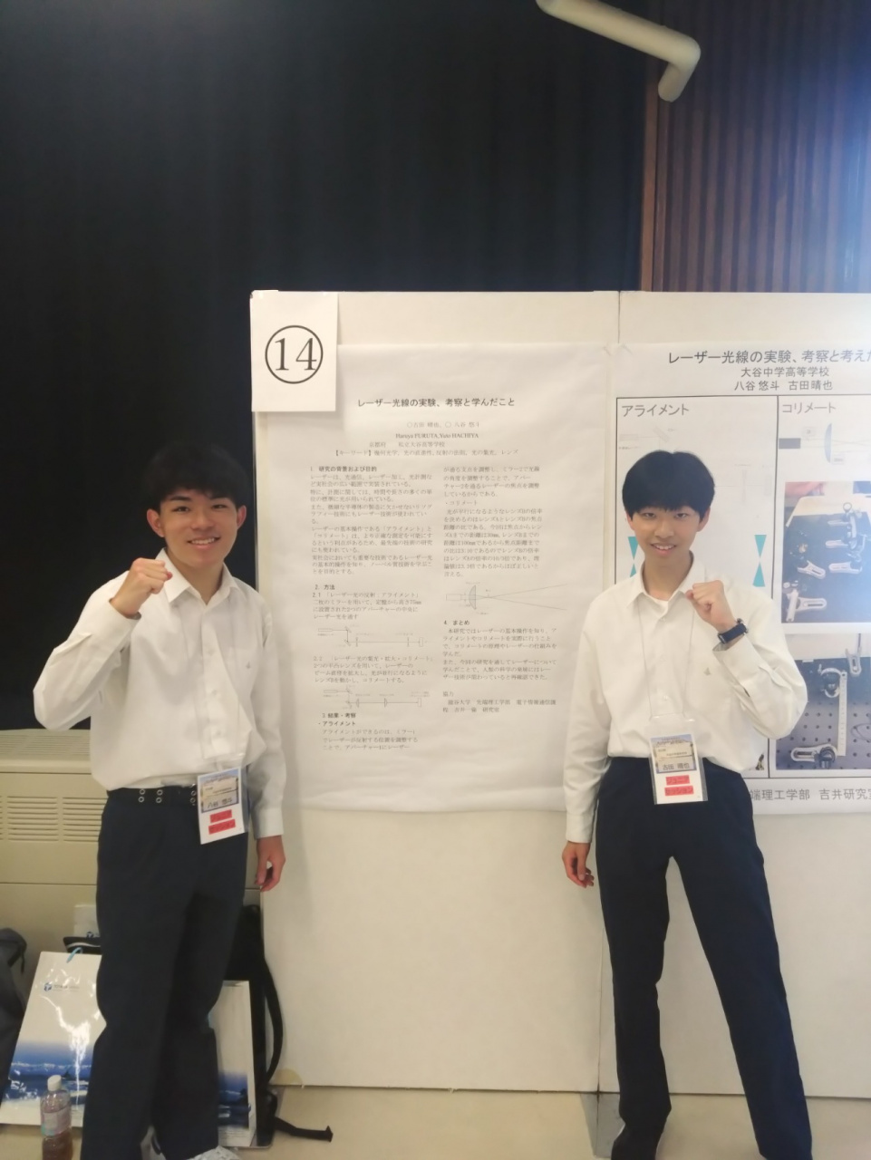 今回の中高ジュニアセッションでは、その時に研究した内容をまとめ、「レーザー光線の実験、考察と学んだこと」と題し、発表されました。