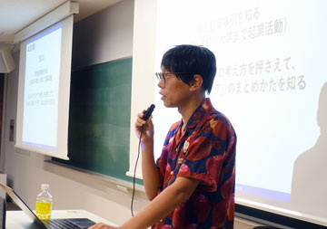 講演では、ゲームソフトの売買やインターネットオークション、ECビジネスの立ち上げといった具体的な事例が紹介され、収益を上げながらビジネスを拡大していくための実践的なノウハウが共有されました。また、大学の起業支援制度やビジネスコンテストなど、学生が活用できる資金調達の機会についても詳しく解説されました。
