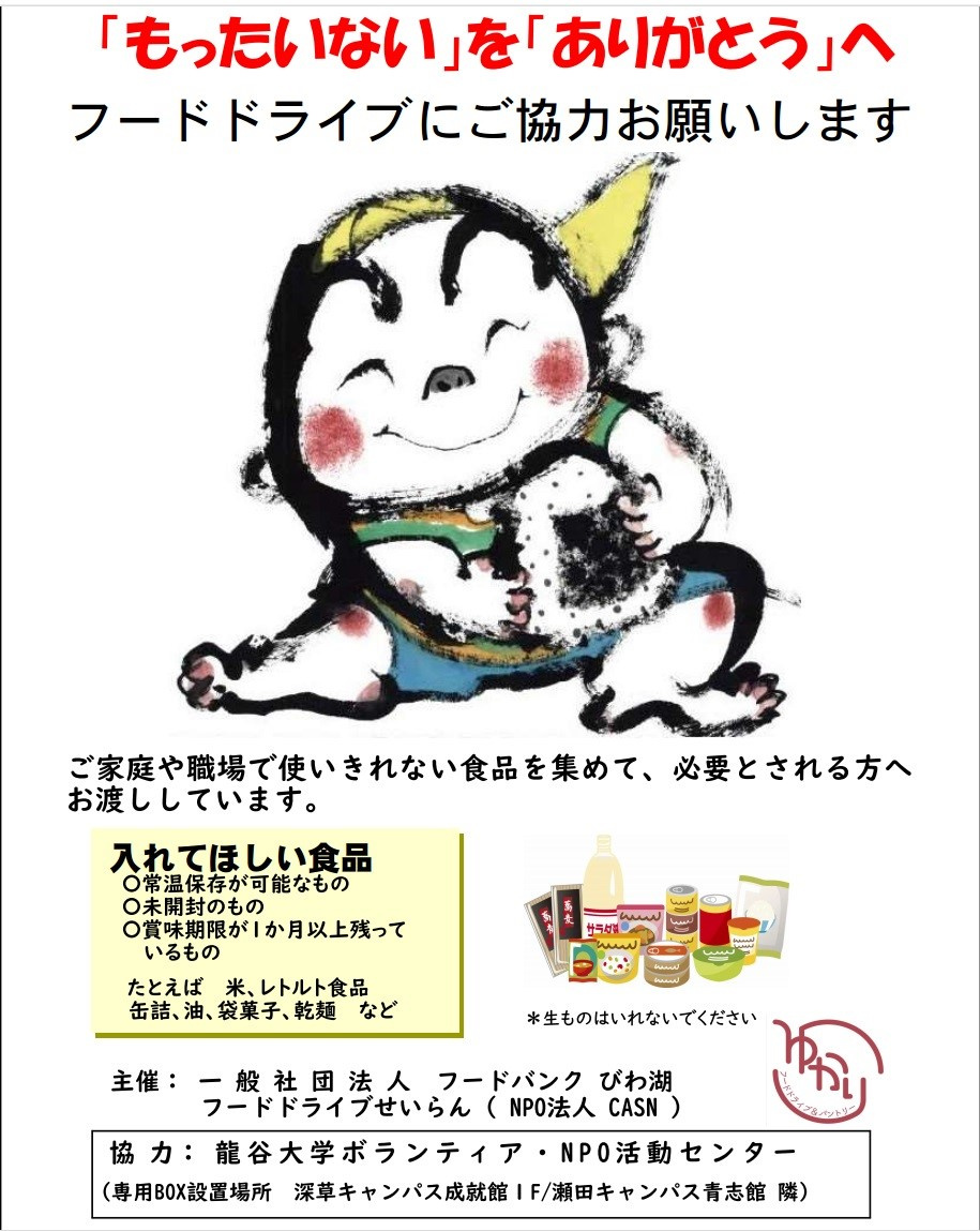学内関係者のみなさん、近隣住民のみなさん、もしご自宅で眠っている食品があれば、ぜひご協力お願いいたします。