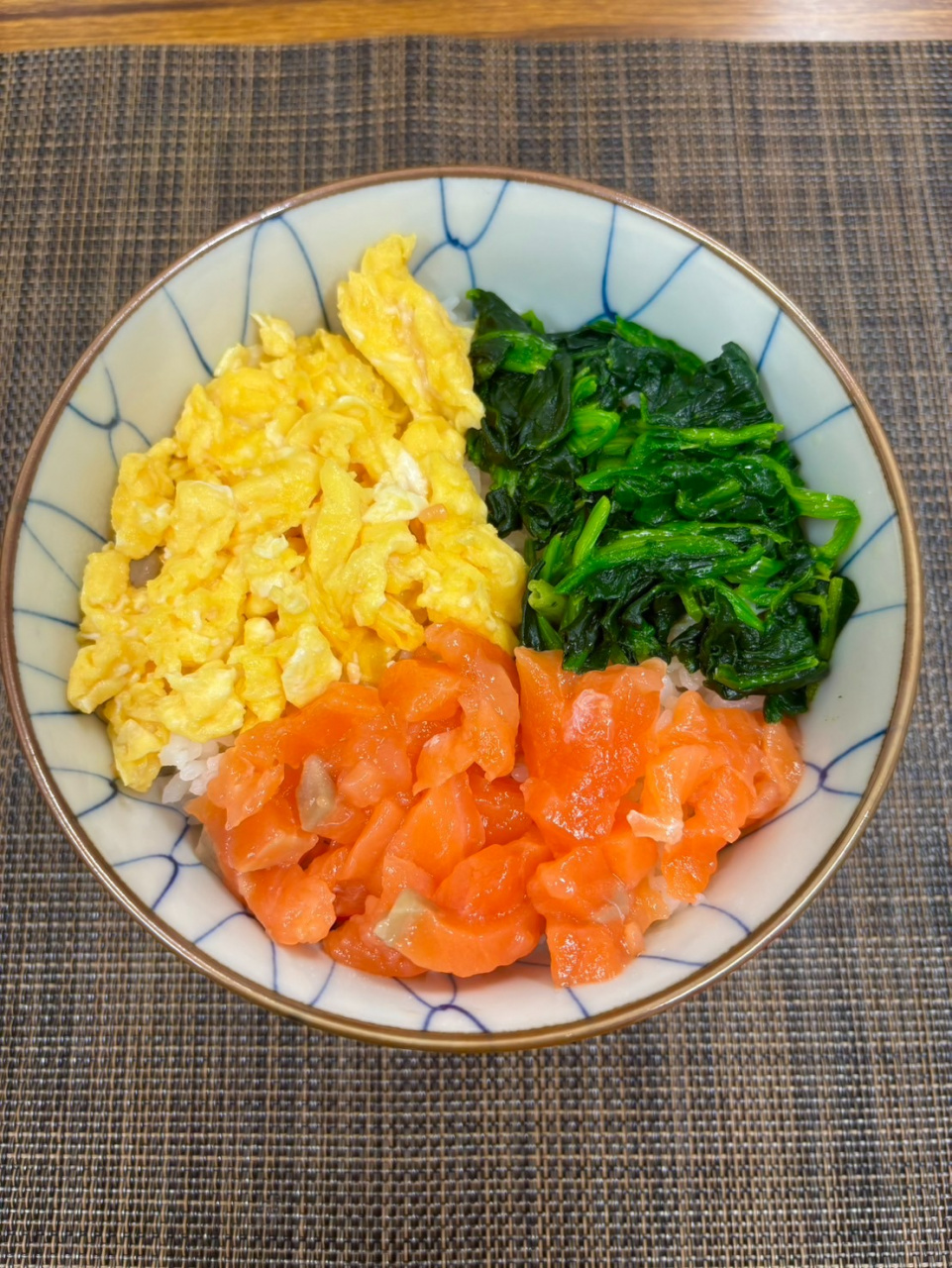・鮭・卵・ほうれん草の三色たんぱく丼(¥561)