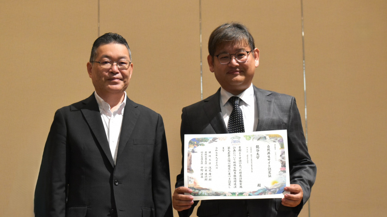 - 2025年4月に施行された地域生物多様性増進法に基づく「自然共生サイト」の審査が初めて行われ、9月16日付で本学の「龍谷の森」が「自然共生サイト」として認定された。