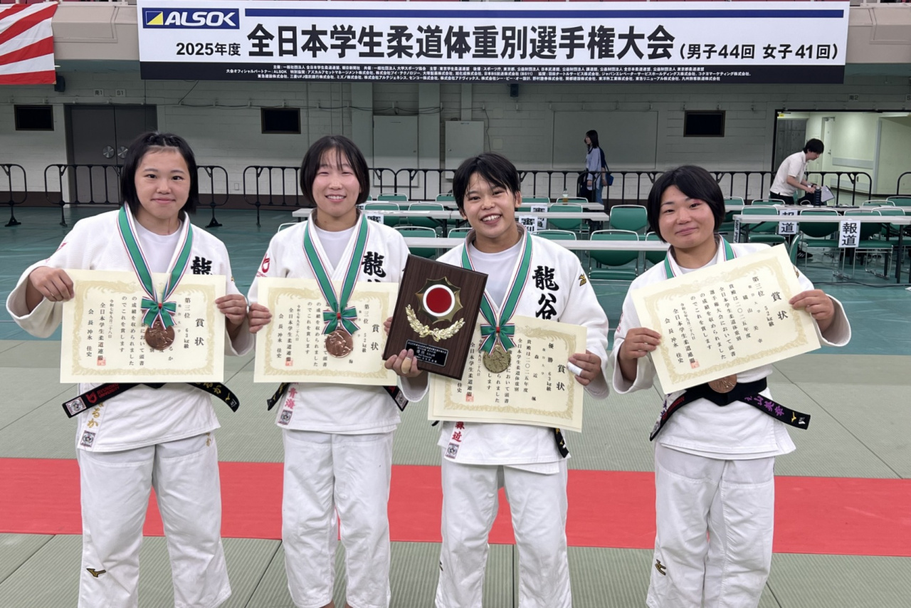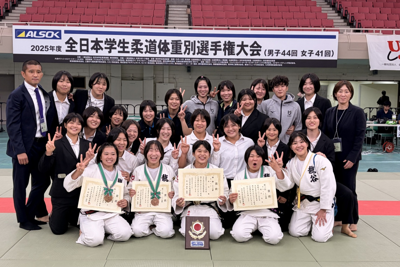 2025年9月27日(土)から28日(日)にかけて、日本武道館で開催された第41回全日本学生柔道体重別選手権大会に、本学から予選を勝ち抜いた14名(男子2名、女子12名)が出場し、女子63㎏級の森近 颯選手(営2)が厳しい組み合わせを粘り強く勝ち上がり、見事日本一に輝きました。