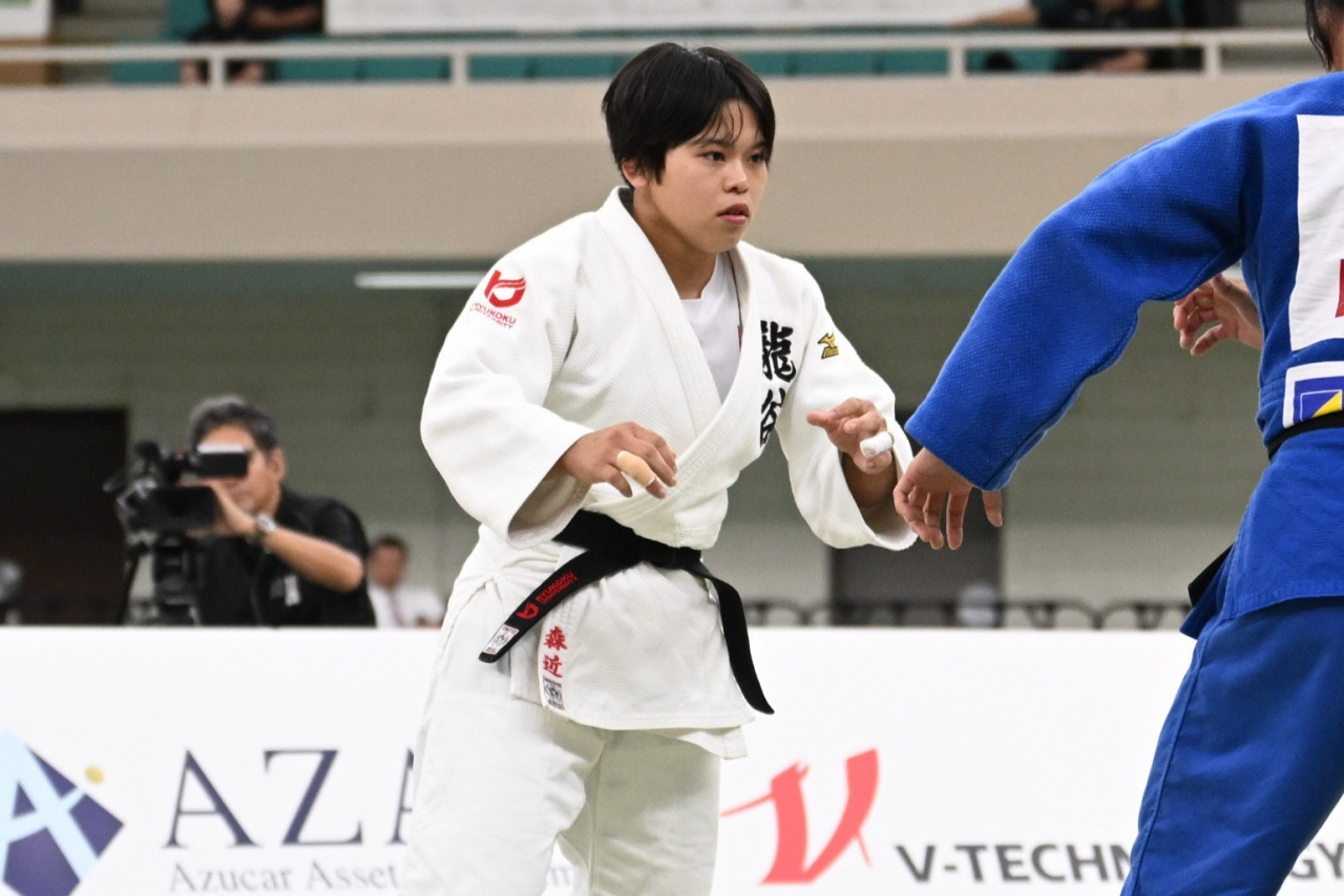 森近選手は初戦となった2回戦、強豪 矢澤選手(東海大)に競り勝つと、3回戦では、第1シードの吉田選手(仙台大)に見事な大内刈り「技あり」で優勢勝ちを収めます。その後の準々決勝を優勢勝ち、準決勝では本学柔道部 尾畑 はるか選手(営3)と同校同士の対決。一進一退の攻防が続く中、一本背負い投げで「技あり」を奪った森近選手に軍配が上がります。決勝戦は、優勝候補筆頭の石岡選手(環太平洋大)と対戦。開始早々、森近選手が石岡選手の足を切り返し「有効」を奪いリードします。その後の相手の猛追を受けますが随所で森近選手も技を打ち返し展開を譲らず試合終了となりました。一瞬で巡ったチャンスを逃さなかった森近選手。昨年の全日本ジュニア王者に続く大学日本一となりました。