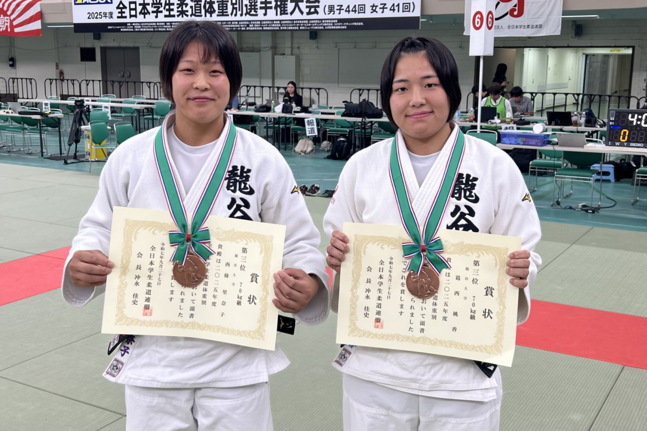 また、女子70㎏級 西條 里奈子選手(営4)、葛西 桃香選手(政3)、女子63㎏級 尾畑 はるか選手(営3)、女子52㎏級 横山 美幸(営4)選手、宮原 青海(営2)選手 が、3位に輝きました。惜しくも優勝には手が届きませんでしたが、見事な勝ち上がりを見せました。