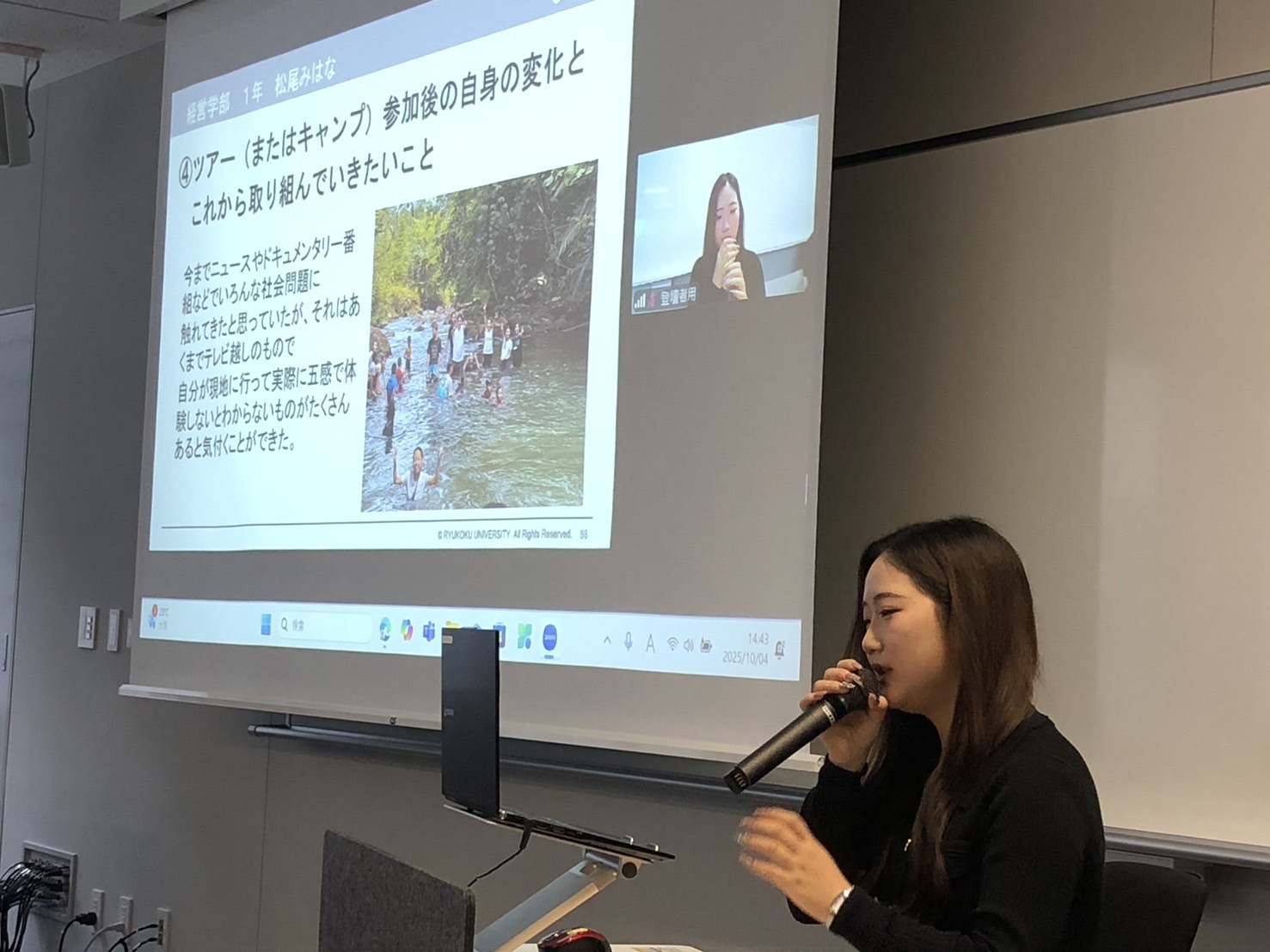 学生たちは、このツアーに参加しようと思った動機や、現地で印象的だったこと・学び・気づき、帰国後の自身の変化やこれから取り組んでいきたいことなどを報告しました。