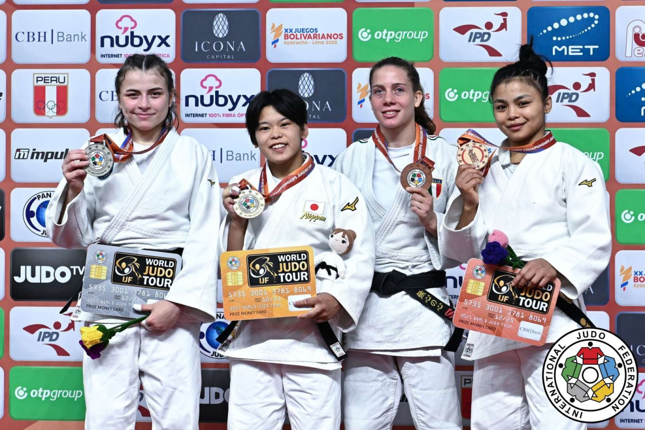 全日本学生柔道体重別選手権大会で”学生日本一”をつかんだ大会(https://www.ryukoku.ac.jp/nc/news/entry-17395.html)から間もなく、開催国ペルーに飛び立った森近選手。ハードスケジュールでコンディション面が心配される中、初戦となった2回戦はBOURSAS選手(フランス)に序盤から指導を奪い優勢に立つと、最後は延長戦に入り崩袈裟固「有効」で優勢勝ちを収めます。続く3回戦は、FERNANDEZ選手(スペイン)、本戦終盤に崩袈裟固「有効」を奪い優勢勝ち。準々決勝はCHANAMBAM選手(インド)と対戦し、序盤から指導を奪いペースを握ると最後は延長戦で指導3つ目を奪い反則勝ちで勝利します。準決勝はRUSSO選手(イタリア)。序盤は森近選手が積極的に攻め指導を奪いリードするも、その後は一進一退の攻防が続きました。そして、長い延長戦の末、開始から13分9秒に森近選手が渾身の大内刈を押し込み「技あり」奪取。しんどい試合を勝ち切り決勝の舞台に勝ち上がります。