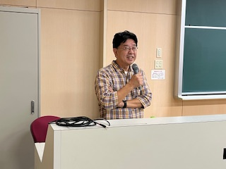村上さんには当日の午前中、細川ゼミ(2回生と3回生の合同クラス)にも加わっていただきました。こちらは座談会形式で進行し、講演用に準備いただいた資料を活用して「現代社会で気をつけて欲しいこと」について、村上さんが話題提供し、学生とのディスカッションが行われました。 (文責 細川孝)