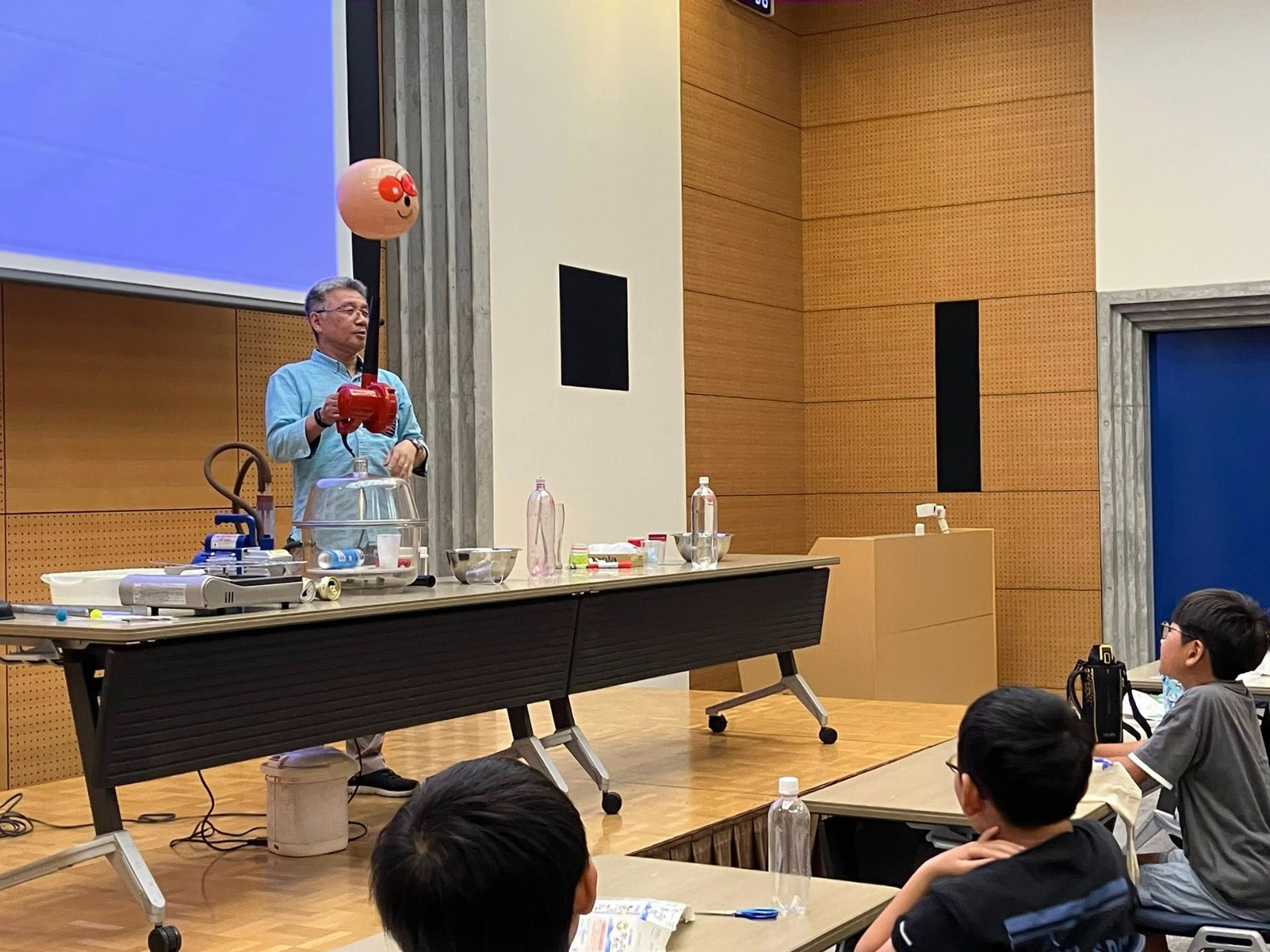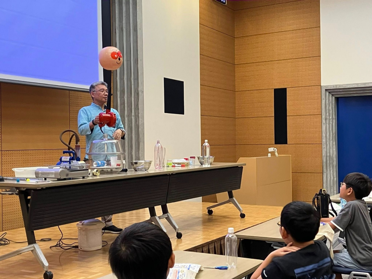 まず、宇宙について考えて貰い、空気の存在を考えてもらう「真空チャンバーを使った真空実験」や「アンパンマンの空中散歩」などの演示実験が行われ、普段考えたこともない「空気の力」を実感する機会になったと思います。
