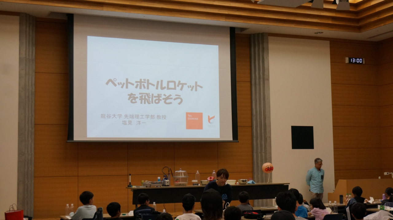 先端理工学部 機械工学・ロボティクス課程の塩見洋一教授が、就職で関係のある企業の方からの依頼を受け、2025年10月11日に、かふか生涯学習館で行われた甲賀市工業会が主催する「ペットボトルロケットを飛ばそう」というイベントに講師として参加しました。