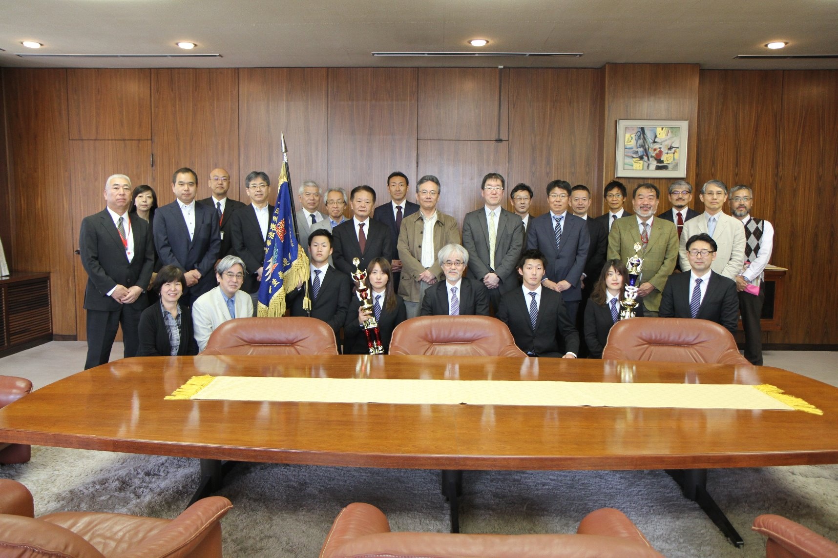 4月26日(木)には大学執行部に活動報告を行い、山川剛史監督から大会結果について報告がされた後、学生から日頃の支援に対する御礼と今後の力強い抱負が述べられました。
