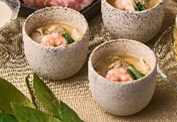 玉子、あんかけ、鶏団子すべてにオリーブ茶を使用したことで、香り豊かな茶碗蒸しになりました。オリーブ茶のさわやかな香りと和食の調和をぜひお楽しみください。