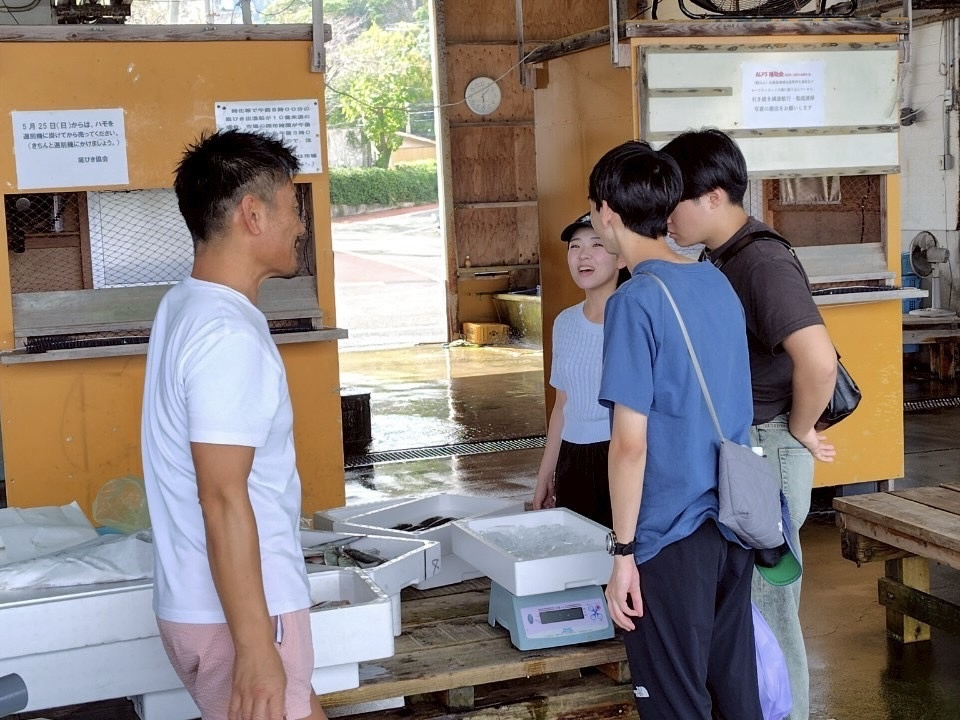 翌日は、前回のフィールドワークと同様、由良漁港でセリを見学しました。前回より、多くの仲買人や漁師の方と話すことができ、せりや漁のことについて理解を深めました。漁師の方がせり台に魚をのせる様子や、せり落としの仕方についても詳しく聞くことができました。今後は、これまでのフィールドワークの知見を活かして、ヒアリング調査をまとめていく予定です。