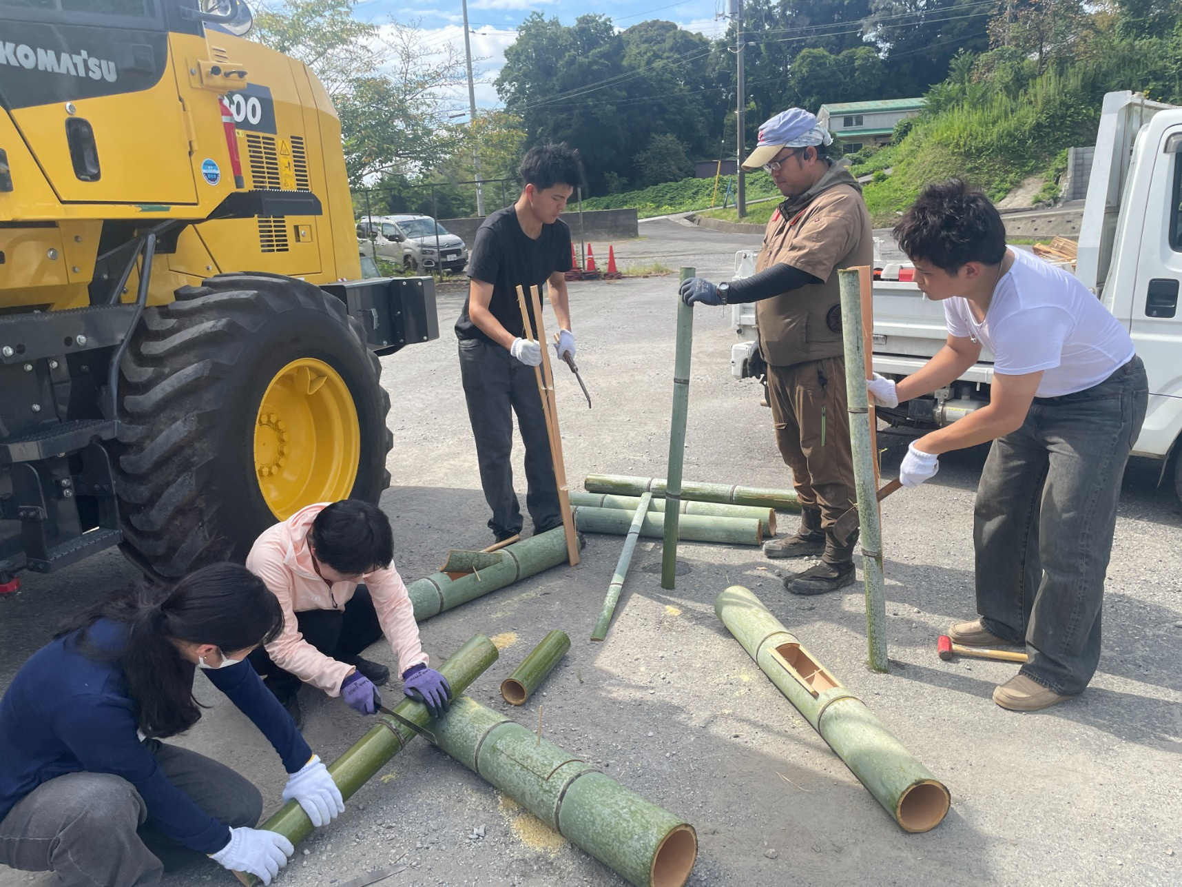 28日は、11月下旬に企画しているチームビルディング研修を実施するにあたって予行演習を行いました。研修の中では、竹のアクティビティを取り入れます。竹を伐採するところから始め、竹筒でご飯を炊き、竹で作った網でバーベキューを行いました。1本の大きな竹から容器や竹飯盒などさまざまなものを作ることが出来るので、チームで話し合って作業する研修にはピッタリな内容だと実感しました。
