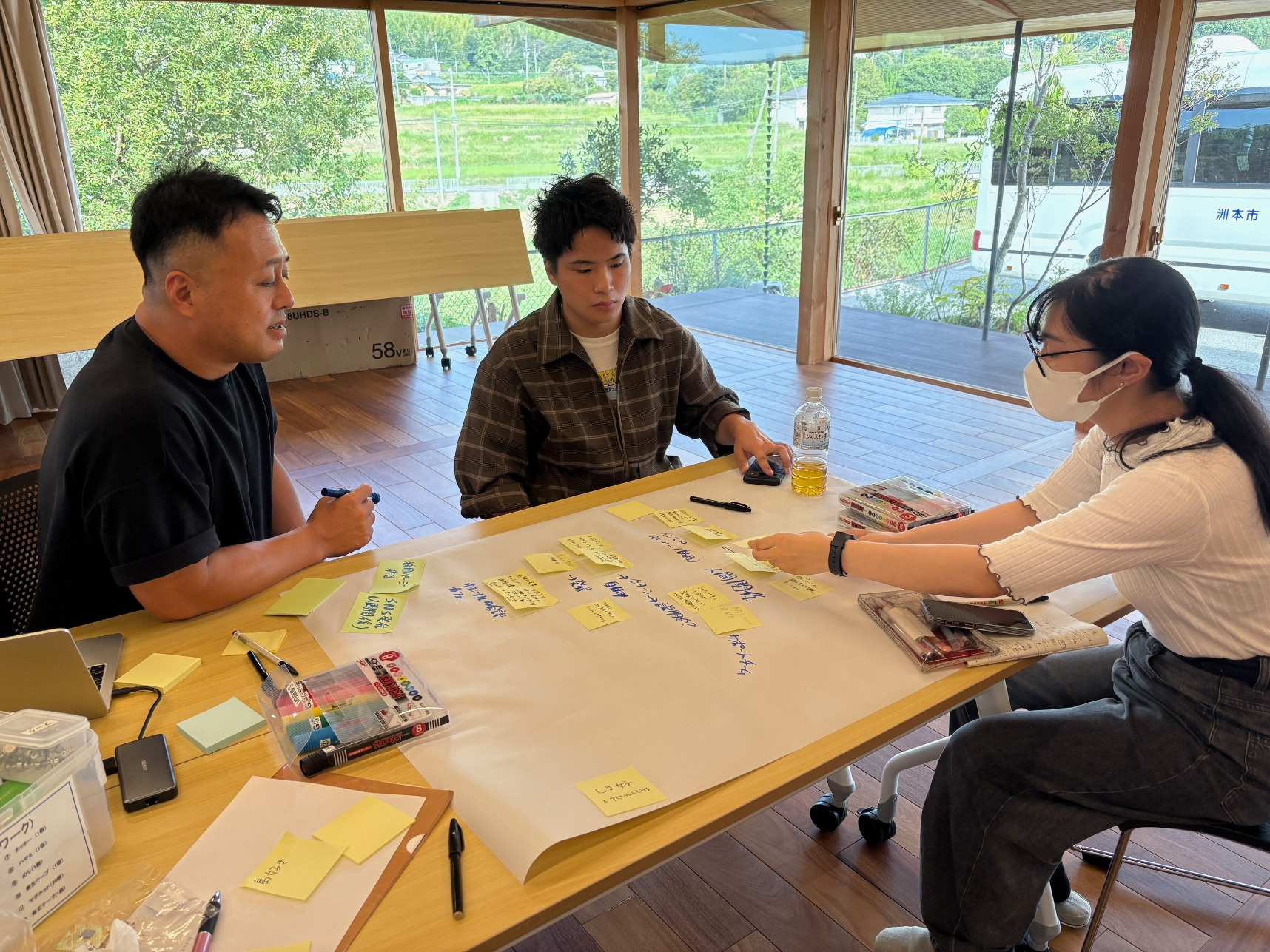 27日午後は、株式会社成田の研修所にて、成田の新卒採用のPR活動についてワークショップを行いました。株式会社成田とは2年前から連携を進めています。社のモットーとして「暮らしのお困りごと解決」を掲げています。どのようなお困りごとを解決してきたのか事例を紹介したり、職場の雰囲気や社員さんの顔が見える記事がホームページにあるとよいのではないか。困りごと解決の様子をビデオに撮りSNSにアップしたらどうかなど、アイデアを出し合いました。
