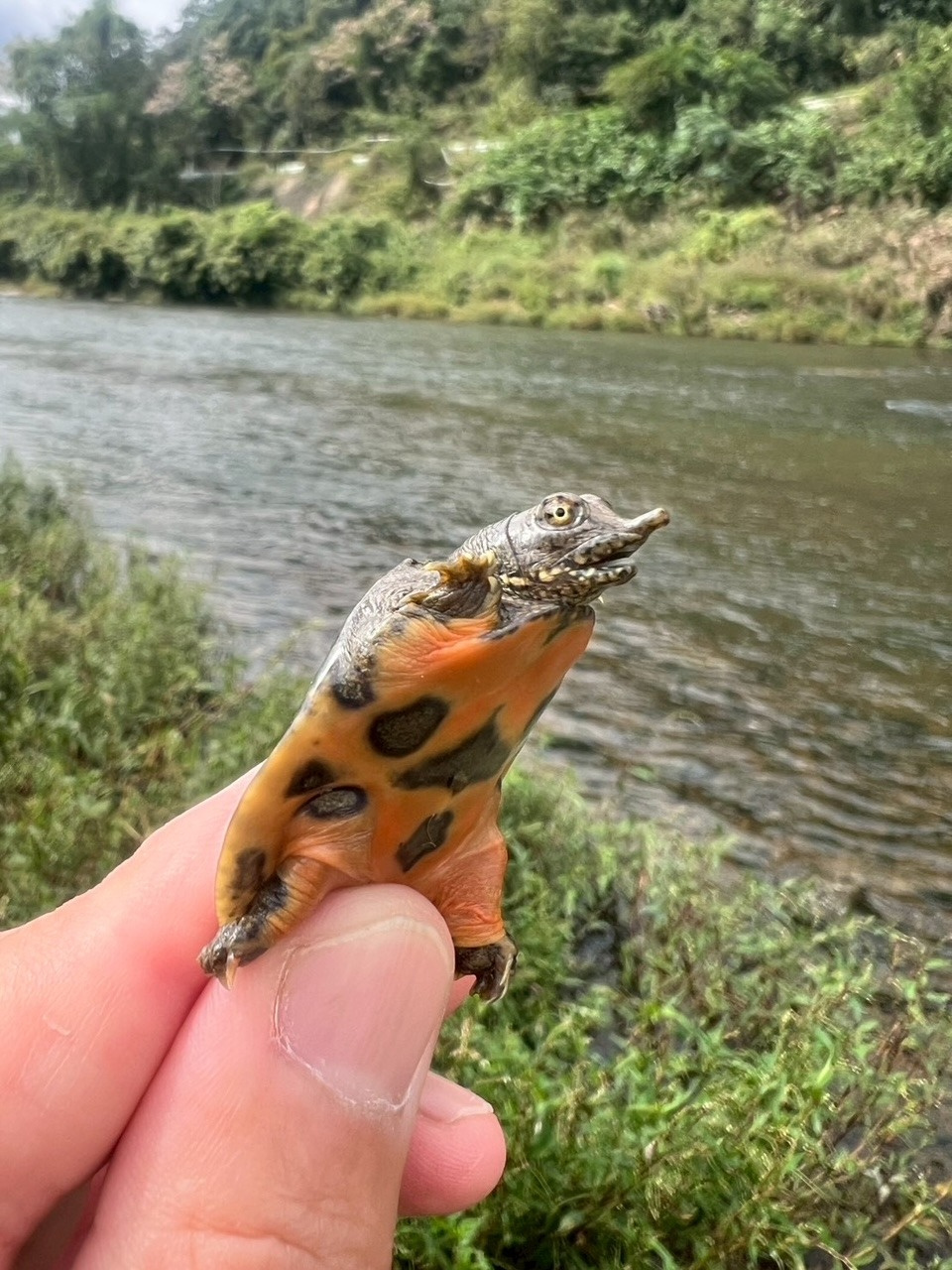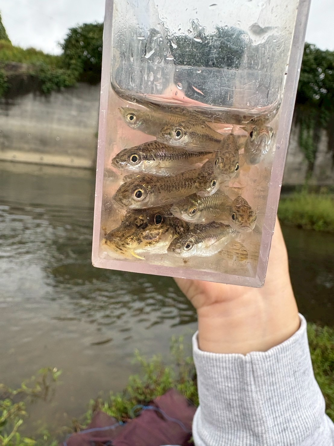 竹田川では、ニホンスッポン、カマツカ、カジカの稚魚、オイカワ、カワムツ、ムツゴ(クチボド)、スジエビ、ヌマエビ、メダカなどの在来種のほか、外来種のアメリカザリガニが見つかりました。大内川では、在来種のドンコ、ドジョウなどのほか、外来種のウシガエルも見つかりました。