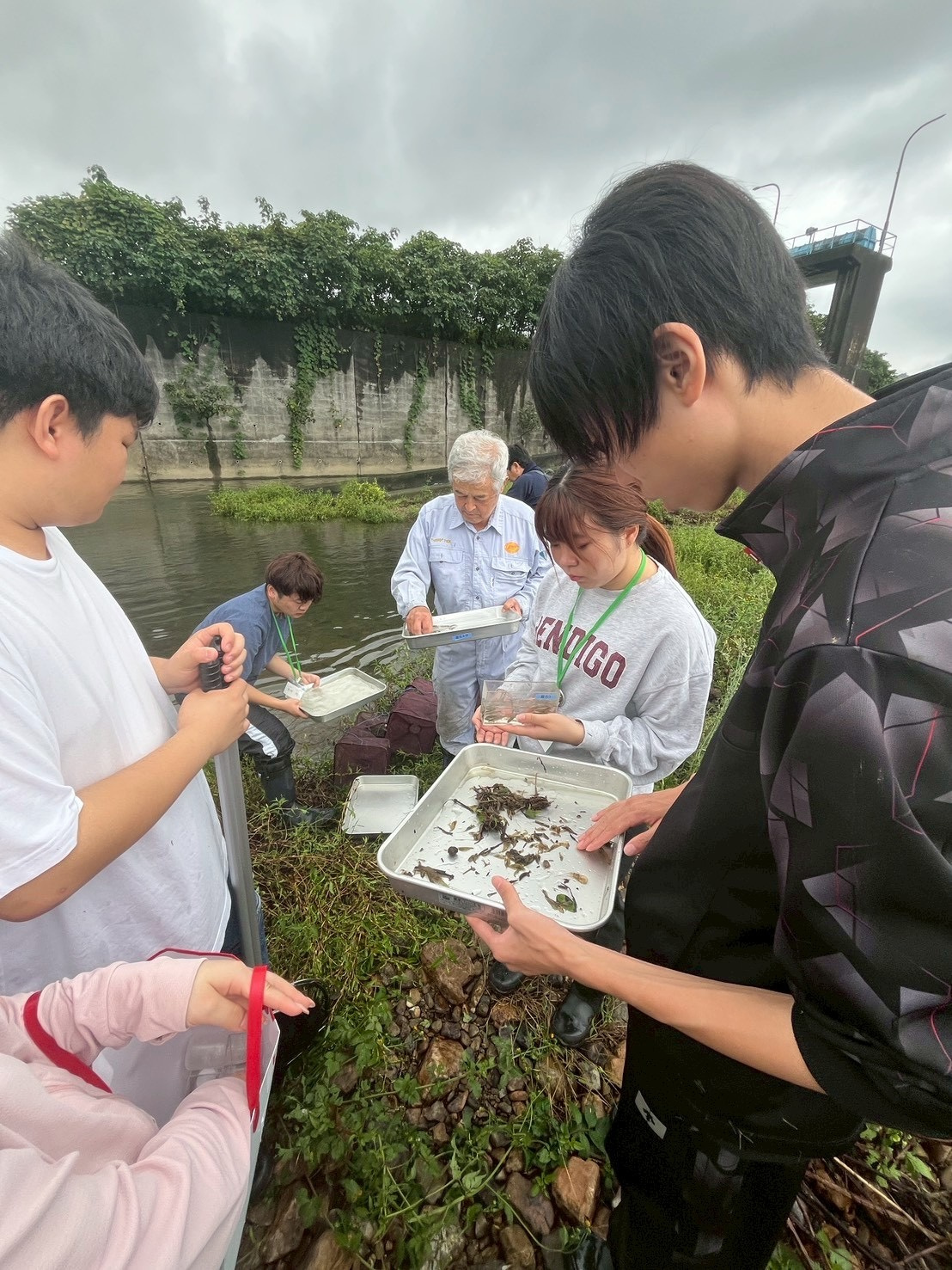 班活動として大内川と竹田川での水生生物調査を実施しました。1日目に魚を調査するためのもんどり(仕掛け)を設置し、2日目の午前中に引き上げて観察をおこないました。