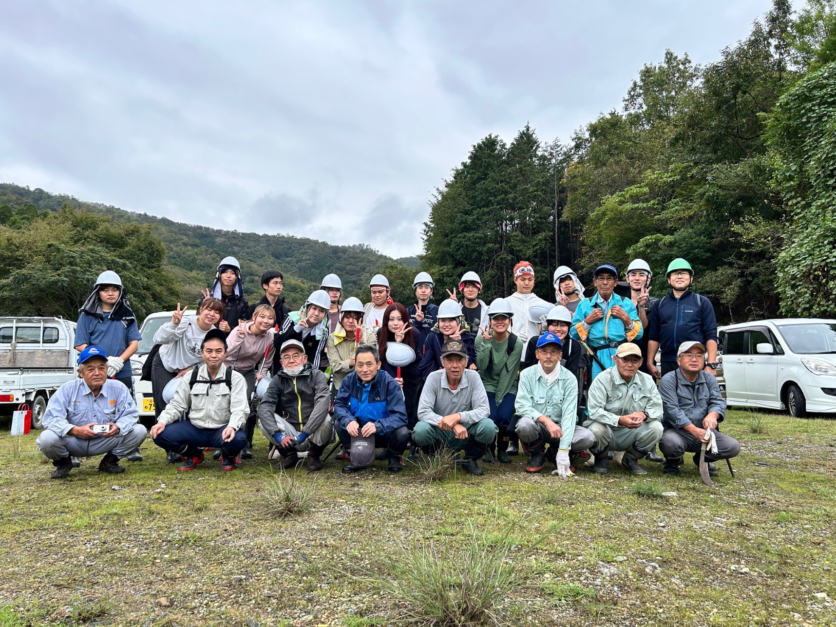 2025年10月18日(土)~19日(日)に京都府福知山市中六人部(なかむとべ)地域において、福知山プロジェクト(指導教員 谷垣岳人准教授)の学生19名(2回生14名、3回生1名、4回生3名)と教員、サポートスタッフ合計20名が今年度第3回のフィールドワークを実施しました。政策学部PBL科目の「政策実践・探究演習」福知山プロジェクトのテーマは「里山の未利用自然資源の利活用」です。取組は3年目を迎えて中六人部地域での認知度も年々向上し、小さな成果も出始めています。