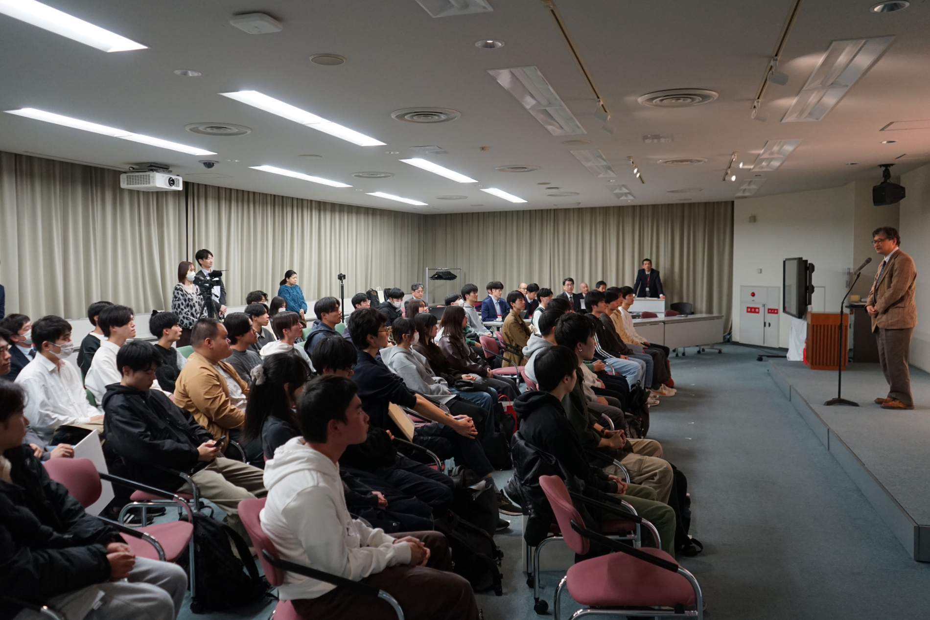 滋賀県中小企業団体中央会との「産学地域連携基本協定」に基づく連携事業の一環として、10/25、26(土、日)に実施したプロジェクトリサーチ・ポスターセッションの審査報告及び審査結果に基づく表彰式を開催しました(11/5)。