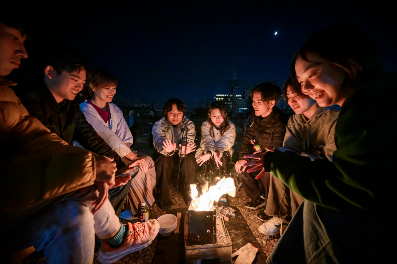 交流イベント開催に先立ち、焚き火を管理し、交流の場づくりをサポートする「火守ボランティア」を龍谷大学生から募集し、13名の学生からお申し込みがありました。