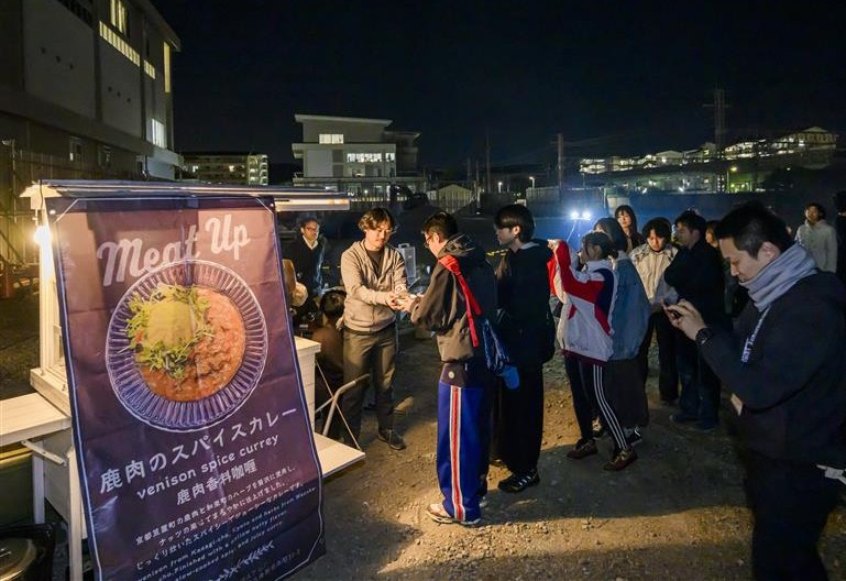 イベントの途中には、本学の卒業生である笠井 大輝 さん(政策学部、2020年3月卒)が経営する「NATURAL BAL MEAT UP」より、ジビエカレーが参加者に振る舞われました。
