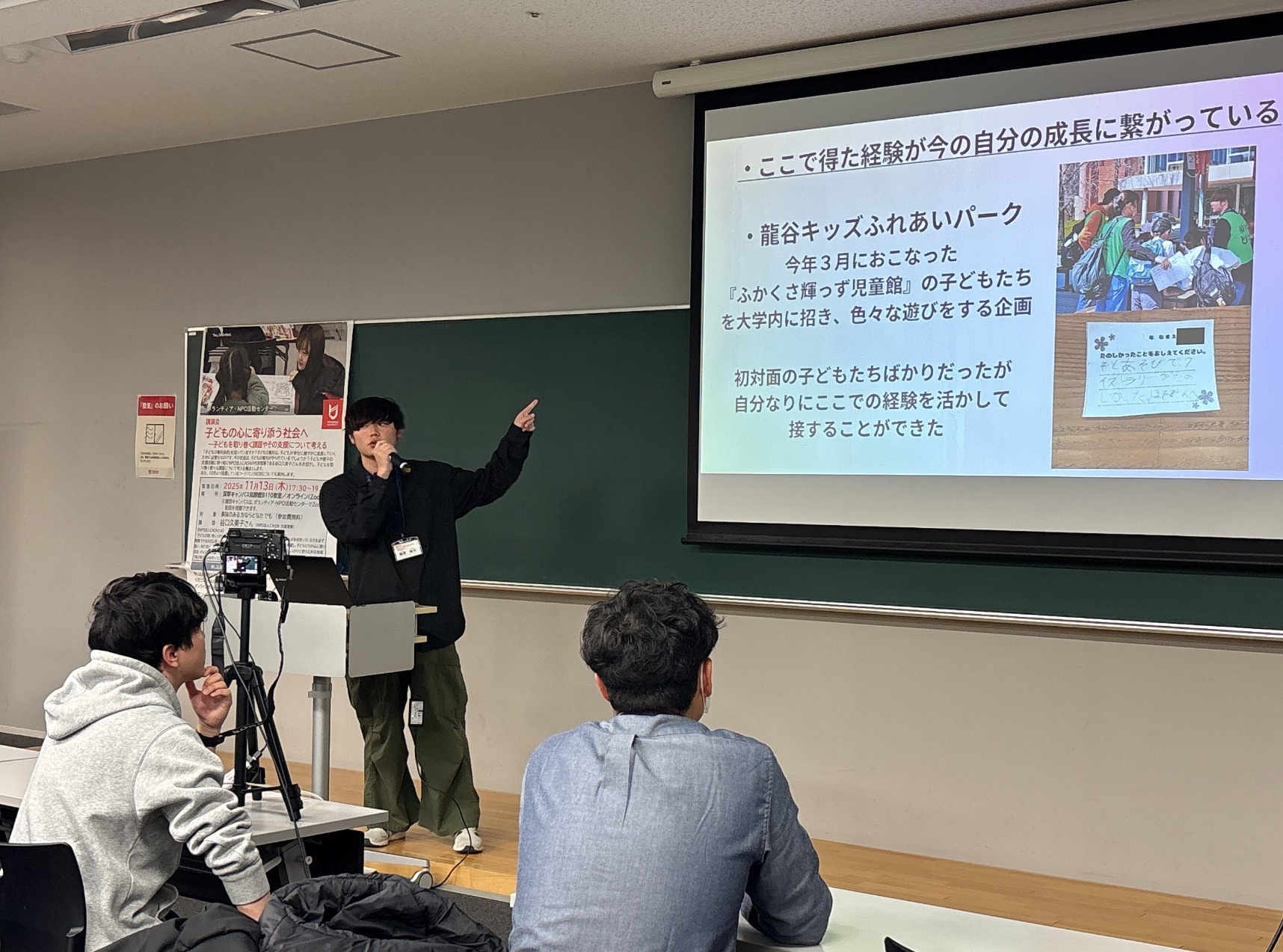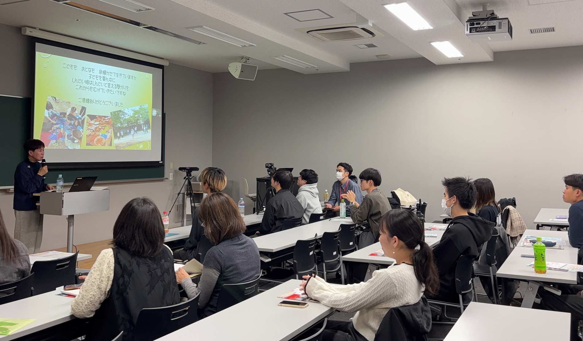 今回の報告会は、参加対象を学内者だけでなく一般の方にも広く聴いてもらえるようにし、本学学生がCASN運営の子ども食堂ボランティアとして活動する様子を知っていただきました。