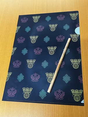 (三宝標や吉祥紋などのモチーフをあしらったクリアファイル)