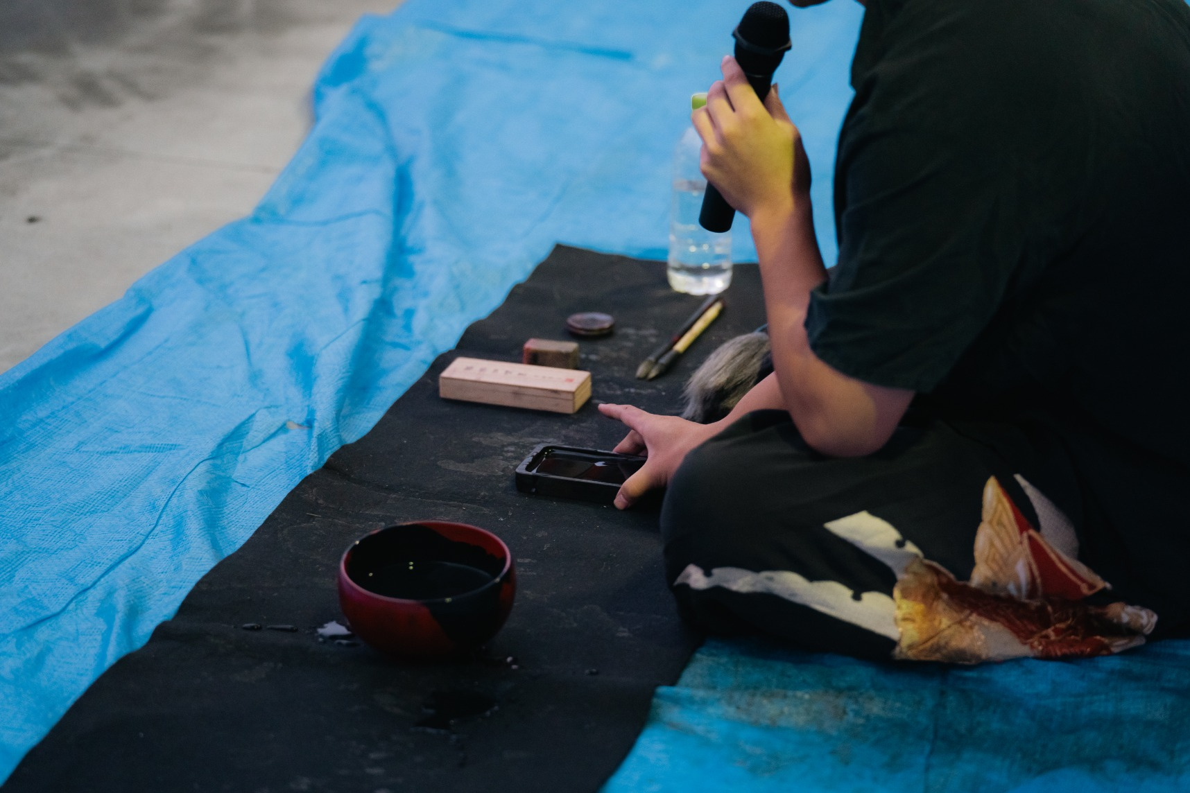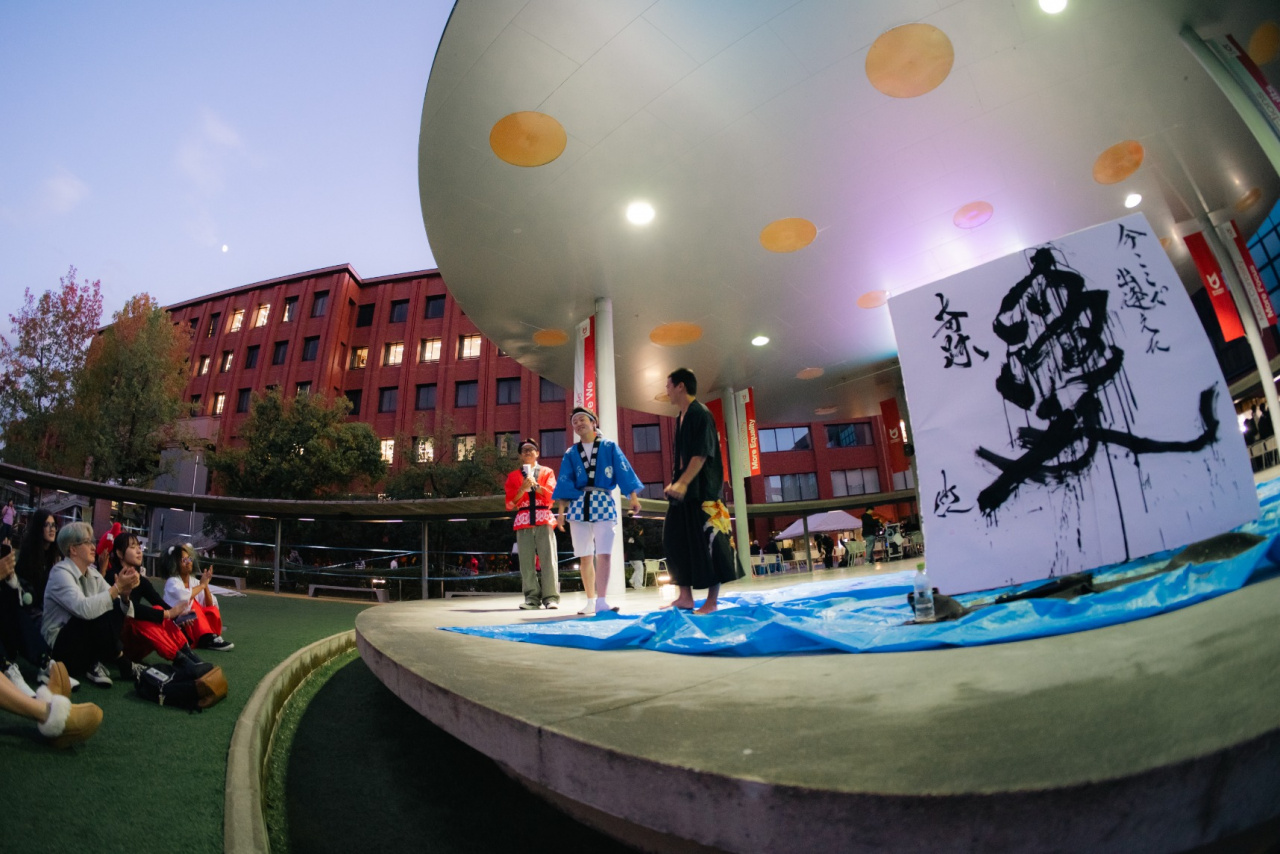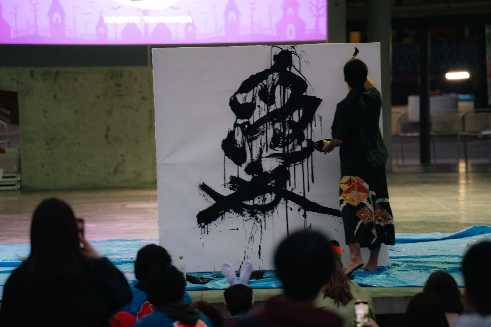 世界で活躍する書道家・富永陽仁さんによる大判の書道パフォーマンスを実施。
