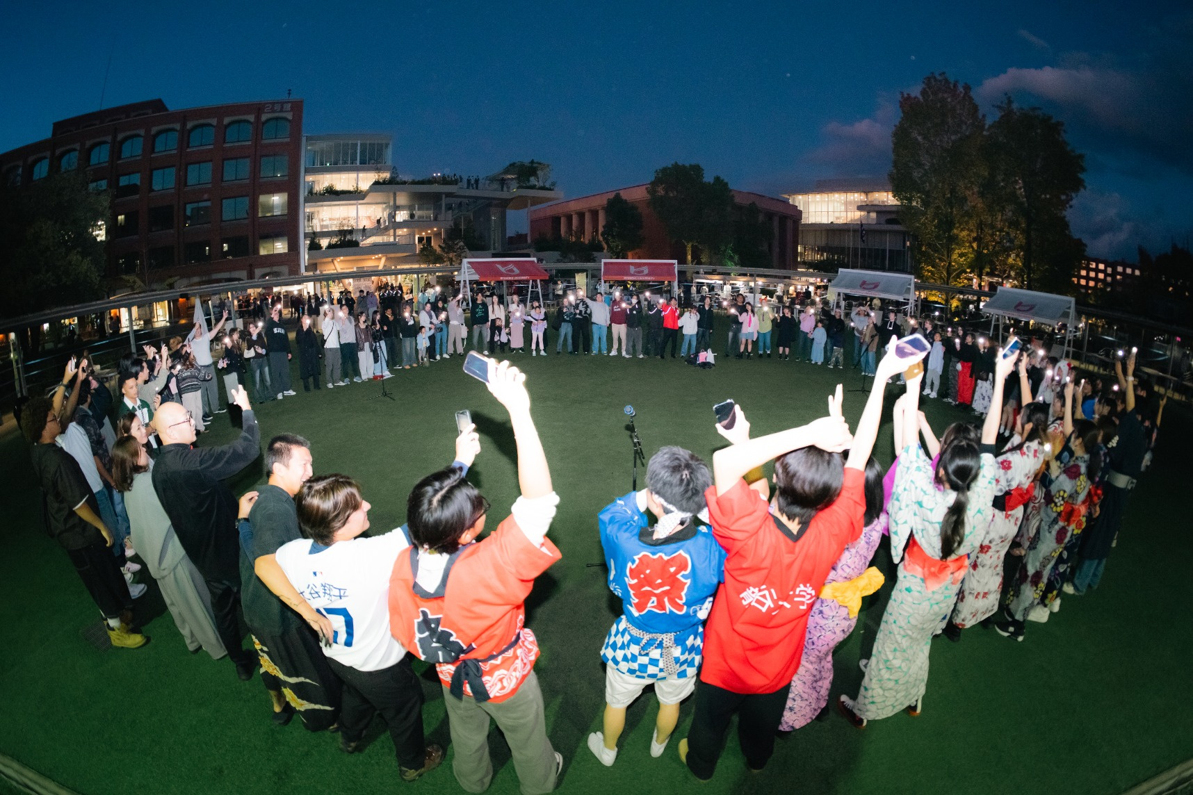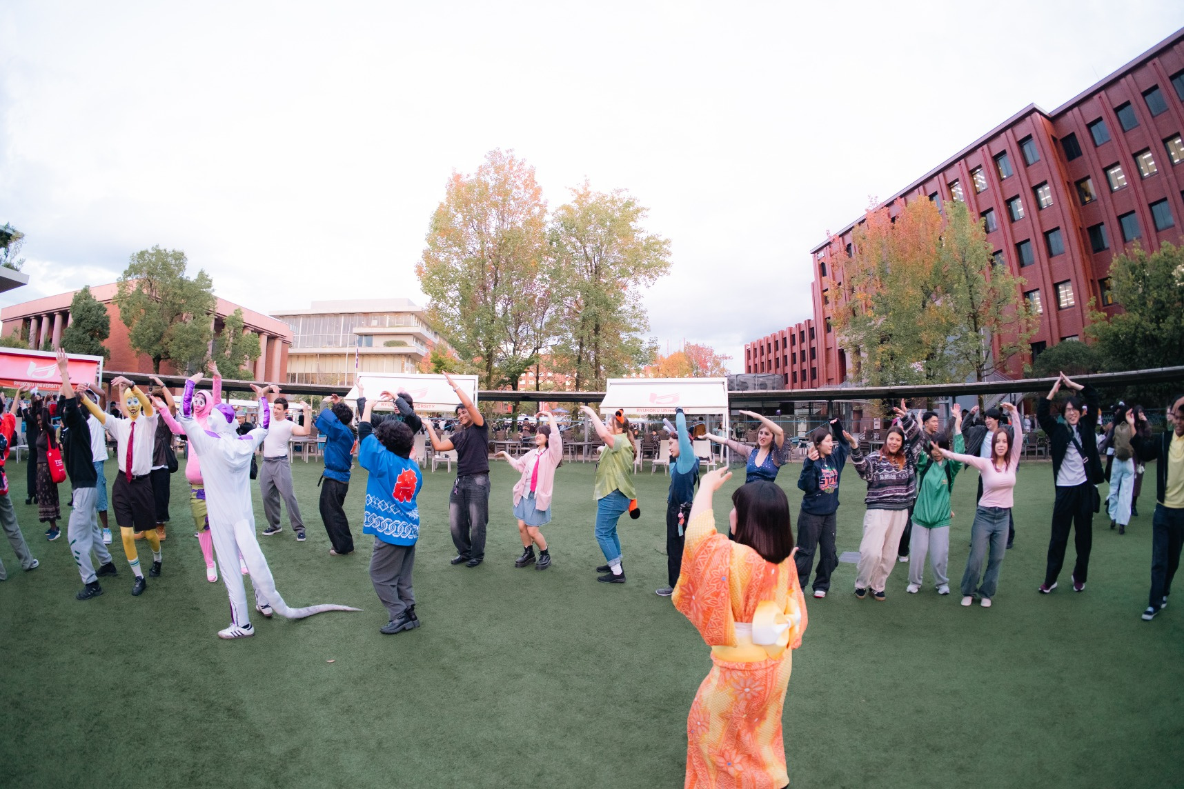続いて行われた盆踊りでは、留学生・日本人学生が円をつくり、来場者を巻き込みながらの大盛り上がりの企画となりました。