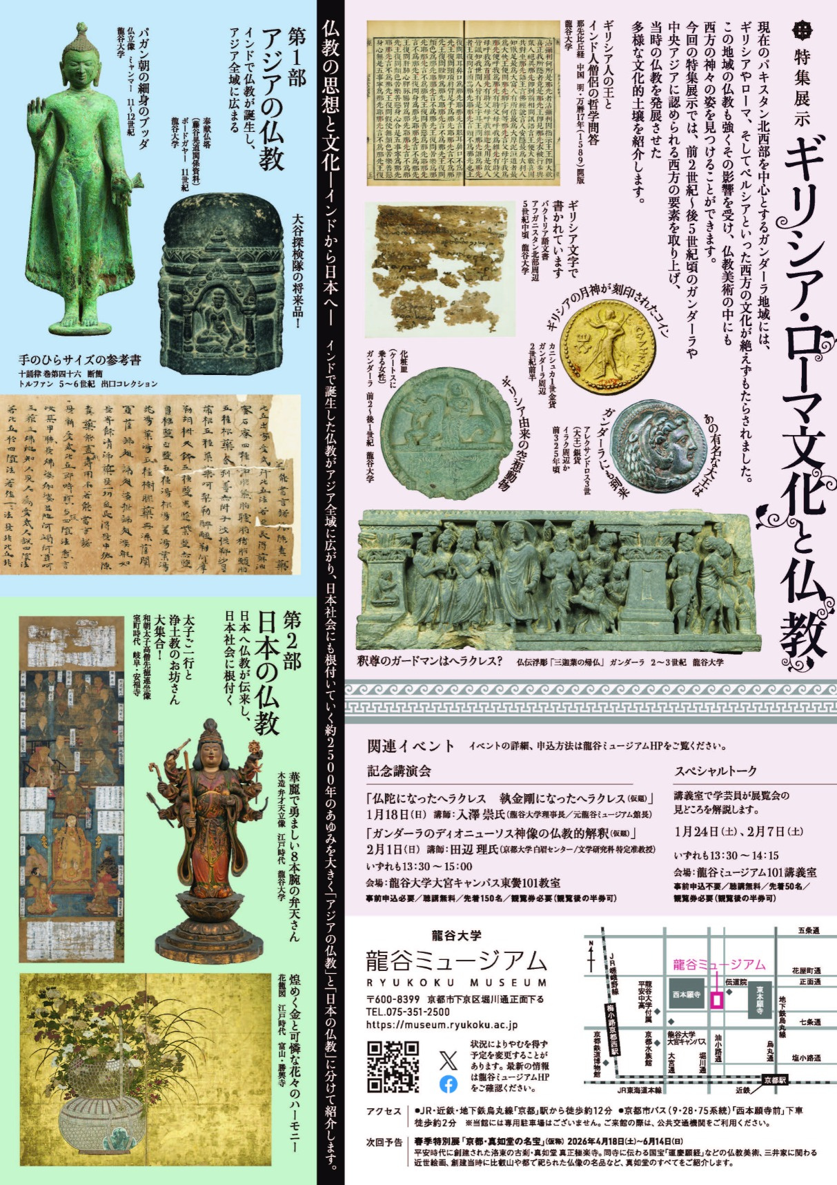 龍谷ミュージアムでは、2026年1月9日(金)からシリーズ展「特集展示:ギリシア・ローマ文化と仏教」を開催します。