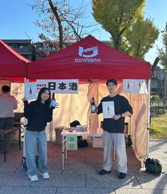 私たちは、日本酒のカップ販売を行いました!本来は販売方法や、おつまみにこだわりたかったのですが、9月に日本酒班独自のイベントを開催していたため、準備時間が限られる中での出展となりました。しかし、独自イベントで培った人脈や経験を活かし、フェスのテーマである「様々な人と繋がる輪」に沿った活動を行うことができました。今回、日本酒班は3月にカクテルを販売していましたが、今回は飲みやすい日本酒を選ぶことで、日本酒が苦手な方やあまり飲まない方にも興味を持っていただけたと感じています。最後に、当日足を運んでくださった皆さま、購入してくださった皆さま、そして少しでも興味を持って質問してくださった皆さまに、心より感謝申し上げます。皆さまのおかげで、私たち日本酒班も最後まで全力で活動を行うことができました。ありがとうございました!