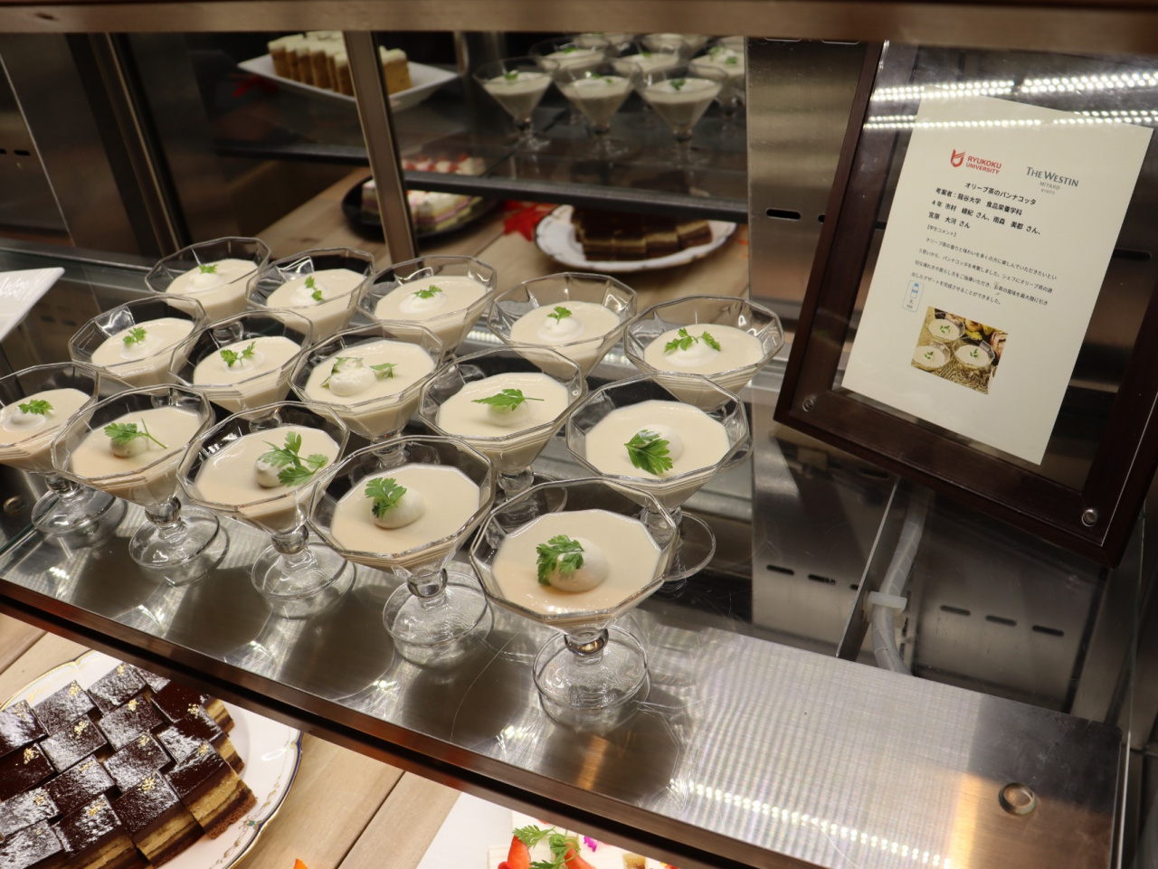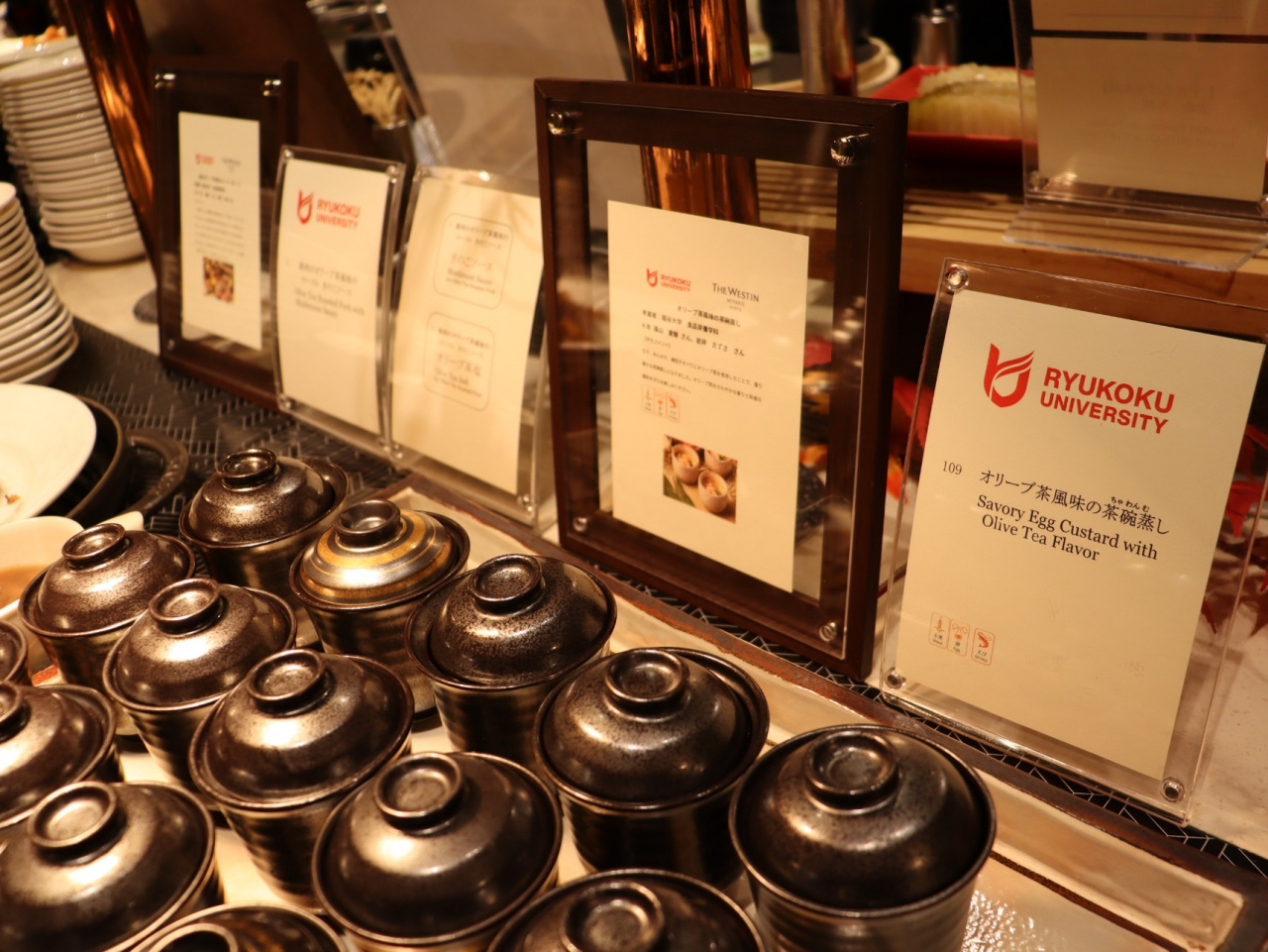 農学部食品栄養学科の学生7名が滋賀県高島市産のオリーブ茶を使用したメニューを開発しました。これらのメニューはウェスティン都ホテル京都で11月1日(土)から11月30日(日)までの間に「京都 冬の恵み」ブッフェで提供されます。(詳細はコチラ)