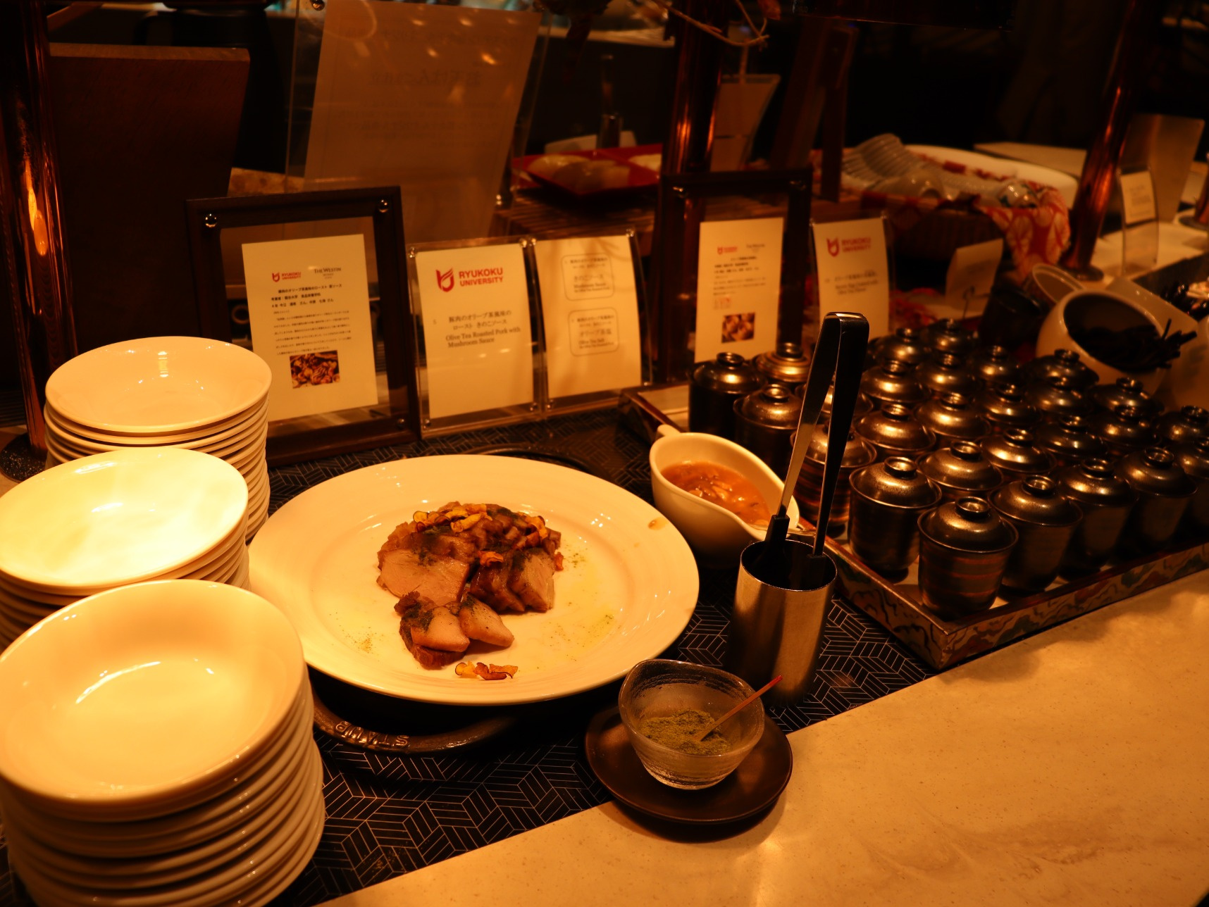 成果報告会の後にはオールデイダイニング洛空にてメニューを試食し、自ら考案したメニューが実際に並んでる光景に感動している様子でした。ホテル担当者からは農学部生考案メニューは通常メニューと比較しても人気があり、多くのお客様が次々と手に取っていく姿が印象的とお言葉を頂戴しました。