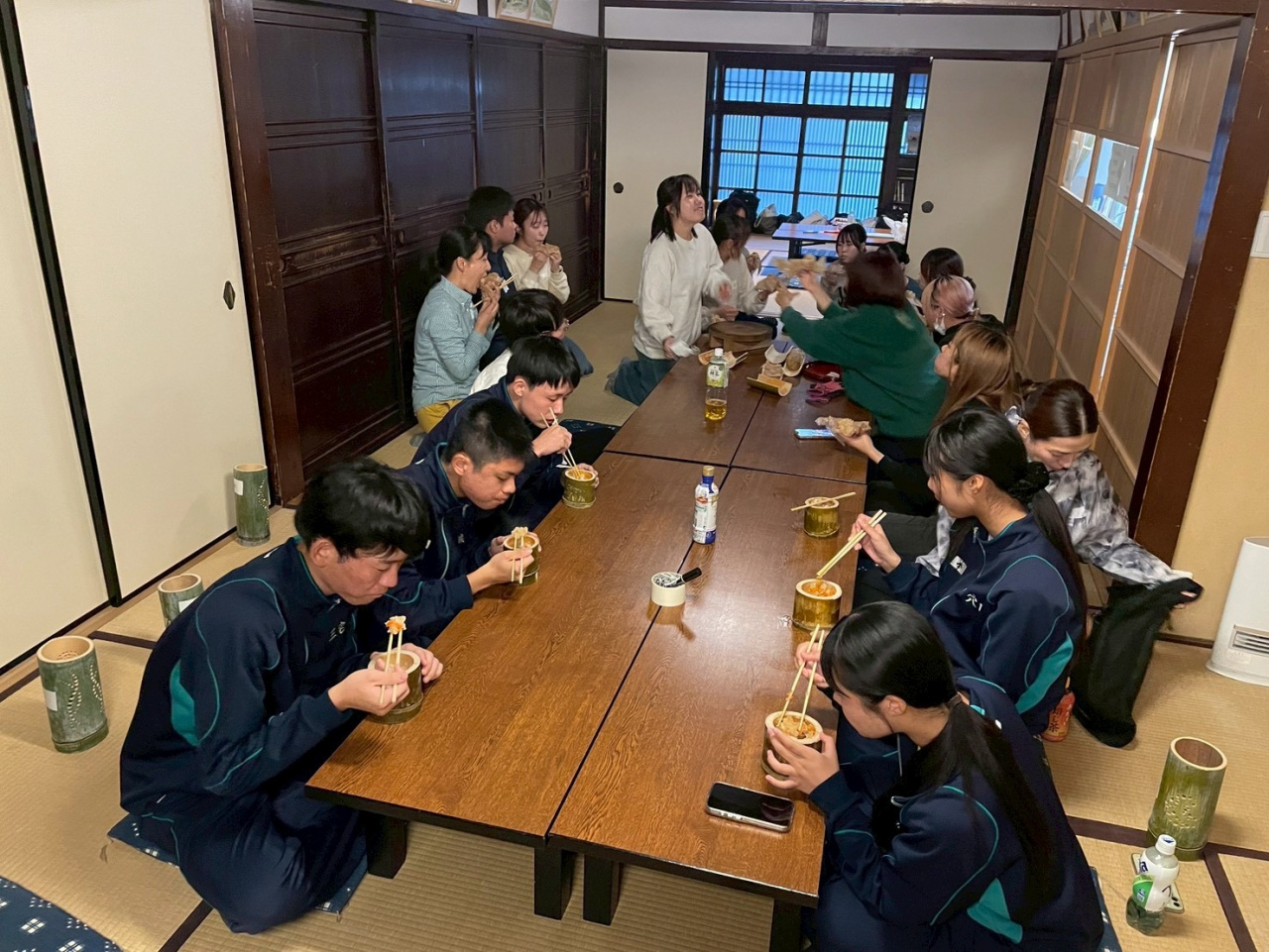 この日、京都府立京都すばる高校の学生たちを龍谷大学深草町家キャンパスに招待して、竹イベントを開催しました。竹筒ご飯、竹箸、竹灯籠作りを体験しながら、これまでの学びを高校生に向けて発信しました。