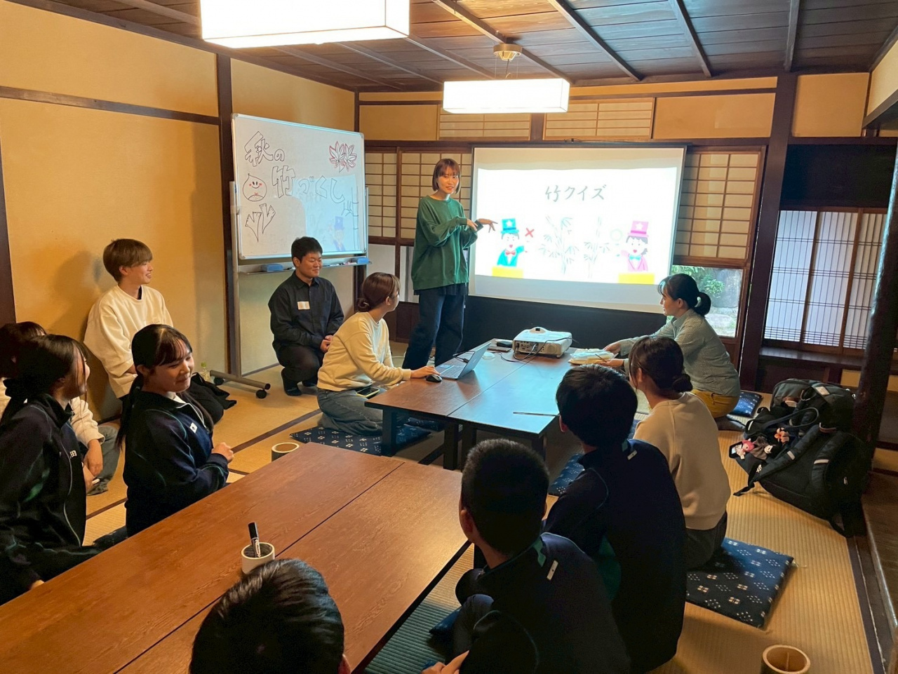 工作体験の後は、竹なぞなぞと竹クイズを実施しました。受講生が考えたオリジナルのクイズで、竹の生態や特徴について楽しみながら学ぶことができました。