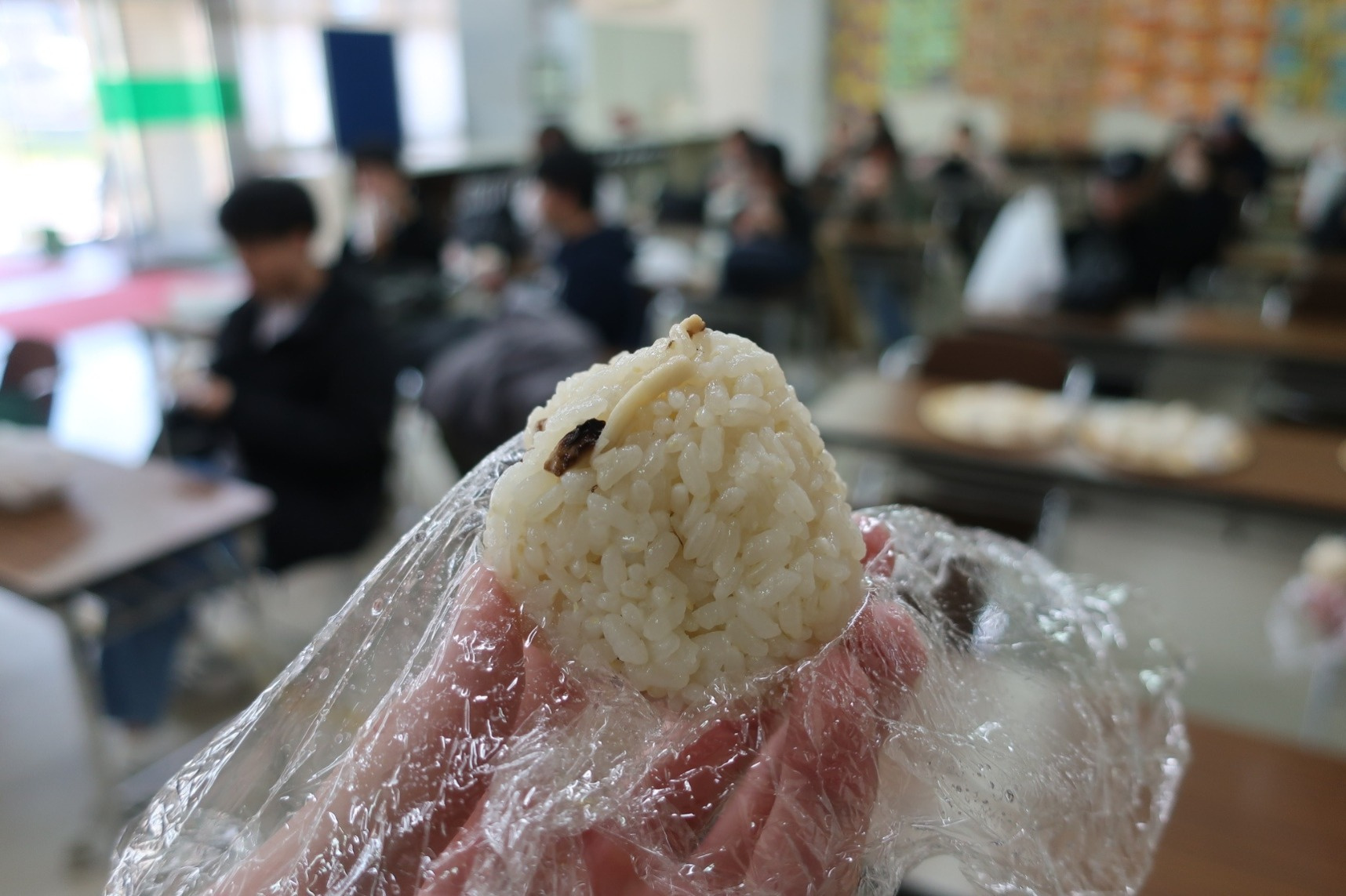 今年度は大内山田集落の財産区(共有地)で、6月、10月の2回ほどマツタケ山整備作業を実施しました。前年度に整備した場所でマツタケの収穫が徐々に始まっているとのことです。嬉しい報告をいただき、マツタケ御飯おむすびを御馳走になりました。目に見える成果を実感することができると活動のモチベーションが上がりますね!