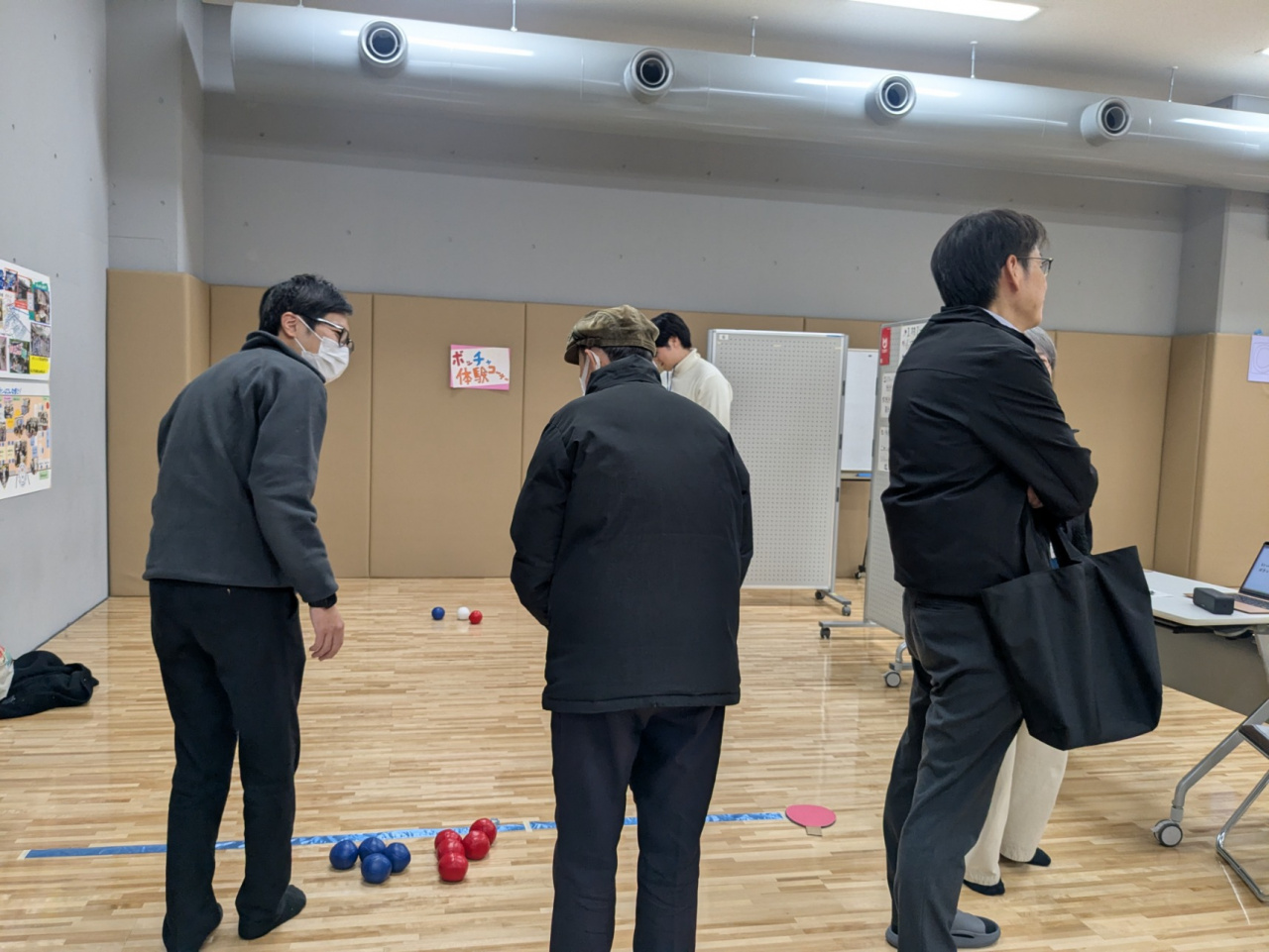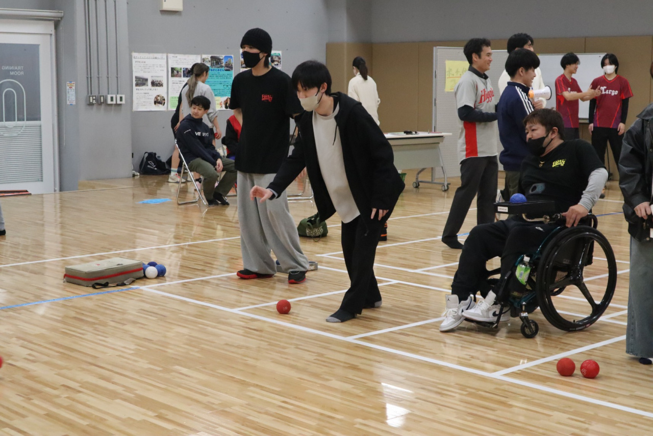 ・他大学でボッチャ経験者の自分達は敬遠されがちかなと思っていましたが、大会のアットホームな雰囲気で、対戦する方以外とも話すことができるなど、とても居心地良く過ごすことができました。会話等を通じて、ボッチャのルールなどの表層的な部分だけでなく、考え方や技など、一歩踏み込んだ部分も少し感じていただけたのではないかと思います。