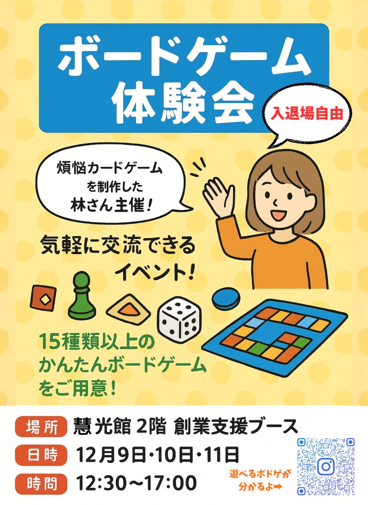 併せて、プレイベントとして様々なボードゲームの体験会を以下の日程で開催しますので、併せて足をお運びください。