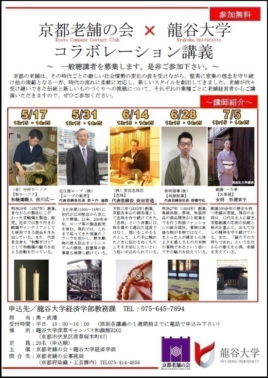 「京都老舗の会」とのコラボレーション講義を開催(一般聴講者を募集中)【経済学部】