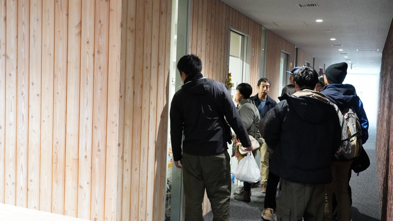 実習では日頃、受講生たちが「おもや」の農作業をお手伝いしたり利用者さんと交流したりして農福連携の実際を体感していますが、「おもや」の利用者さんの中には「大学とはどういう場所なのか?」、「大学生という人はそもそもどういう人なのか?」といった疑問をお持ちの方もおられます。この交流会では、そういった疑問を解消してもらう狙いもありました。「大学」の敷地に足を踏み入れることが初めての利用者さんもおられて、キャンパスの広大さや、コンビニやスターバックスコーヒー、ATMなどが入っていること、斬新な形の学舎や居心地の良い空間にも驚かれていました。